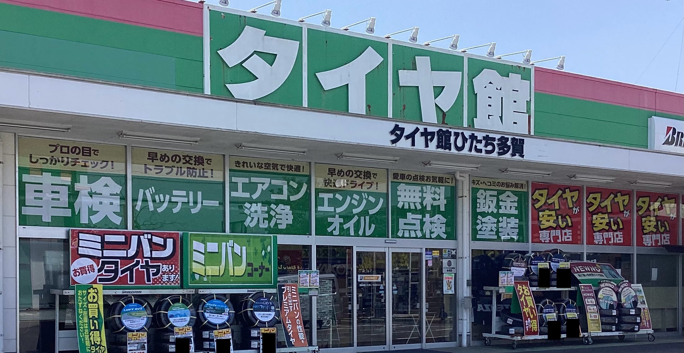 日立市東多賀町のシャトレーゼの隣にあるタイヤ館ひたち多賀店です。