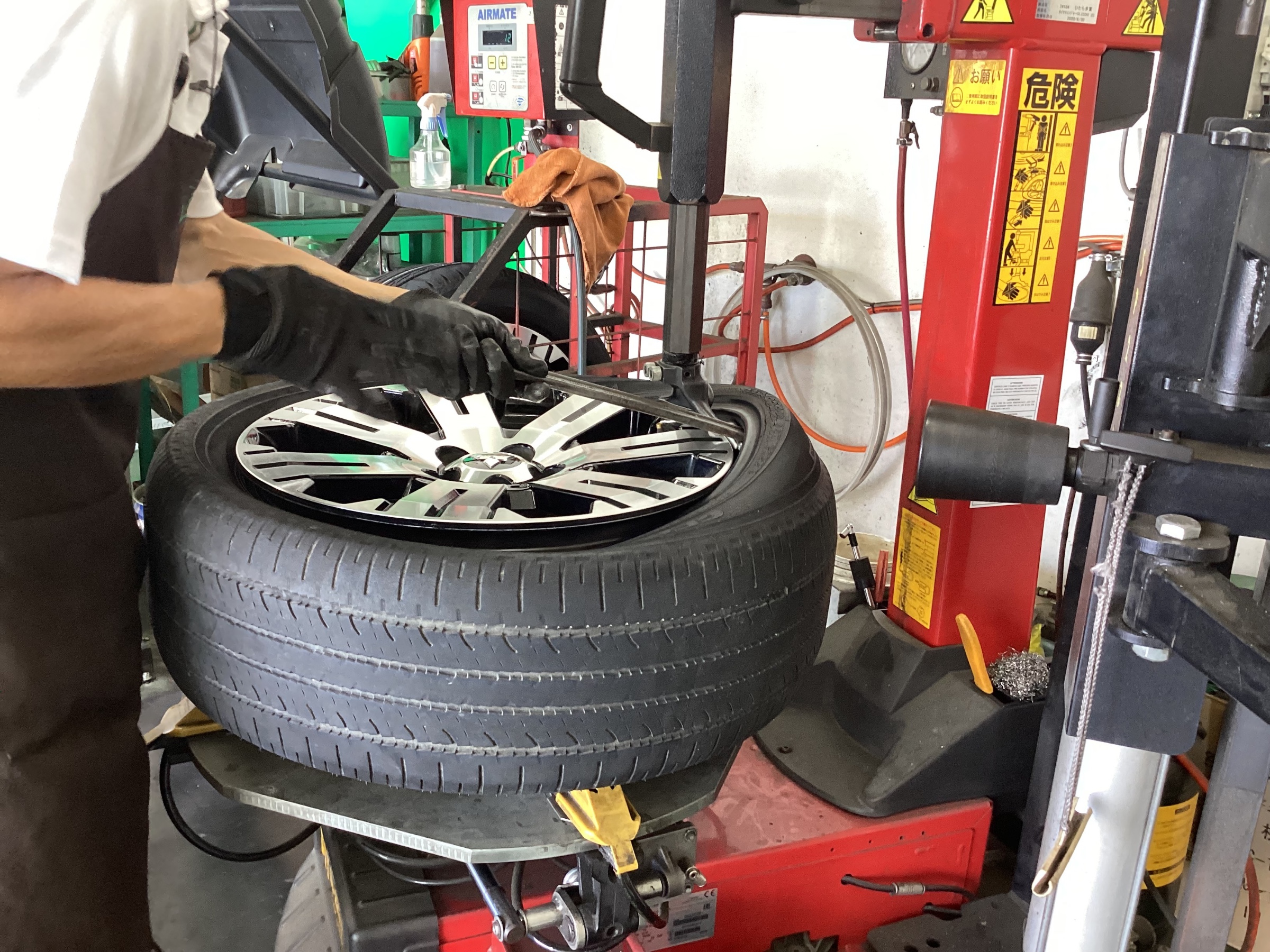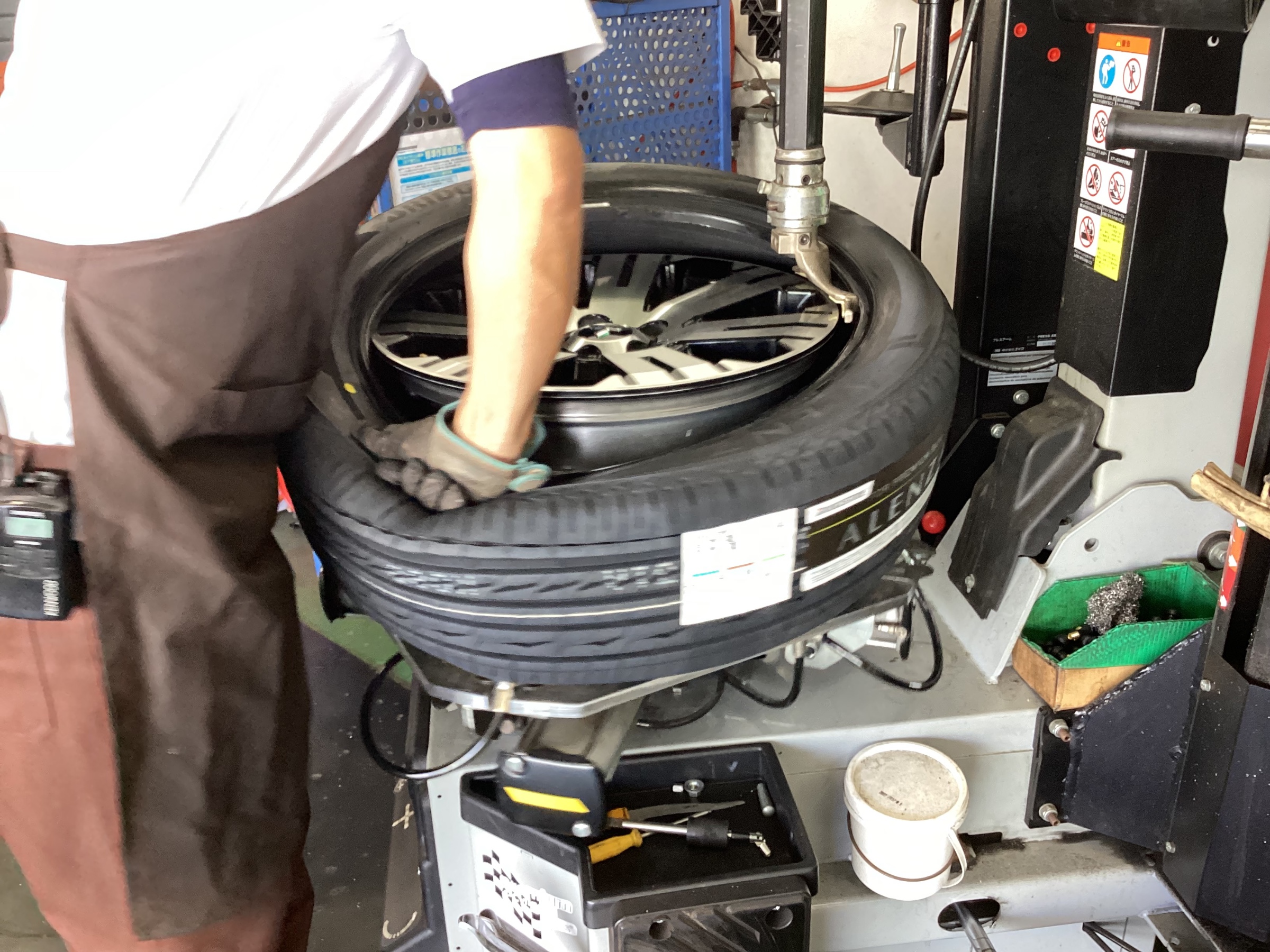 古いタイヤを外してホイールを掃除していきます。