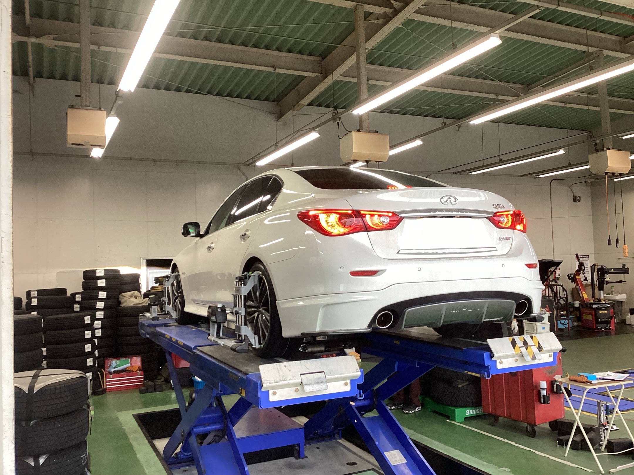 前回タイヤ交換と防錆コーティングを行なった車でアライメント