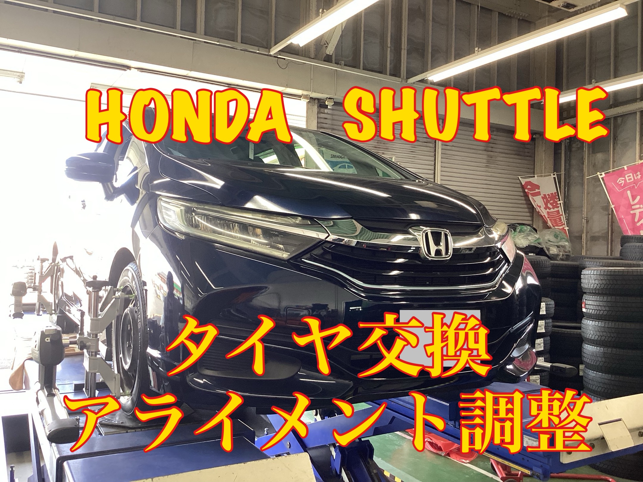 今回はホンダ・シャトルのタイヤ交換とアライメント調整をご紹介します。