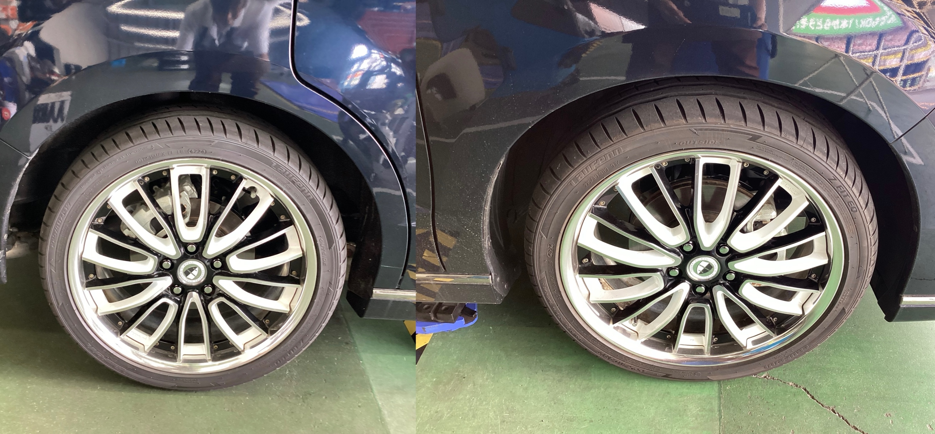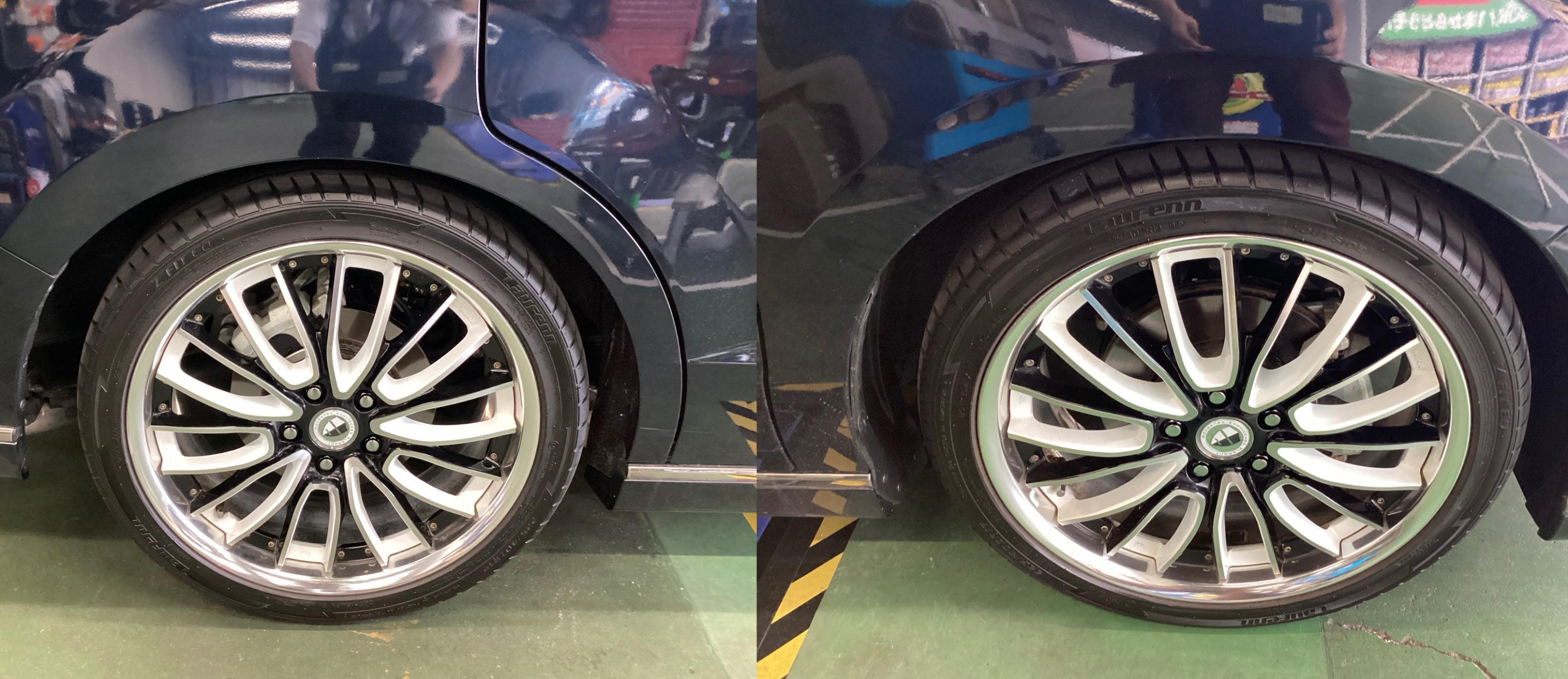 見比べると前後でローダウンされ、タイヤとフェンダー間の隙間は