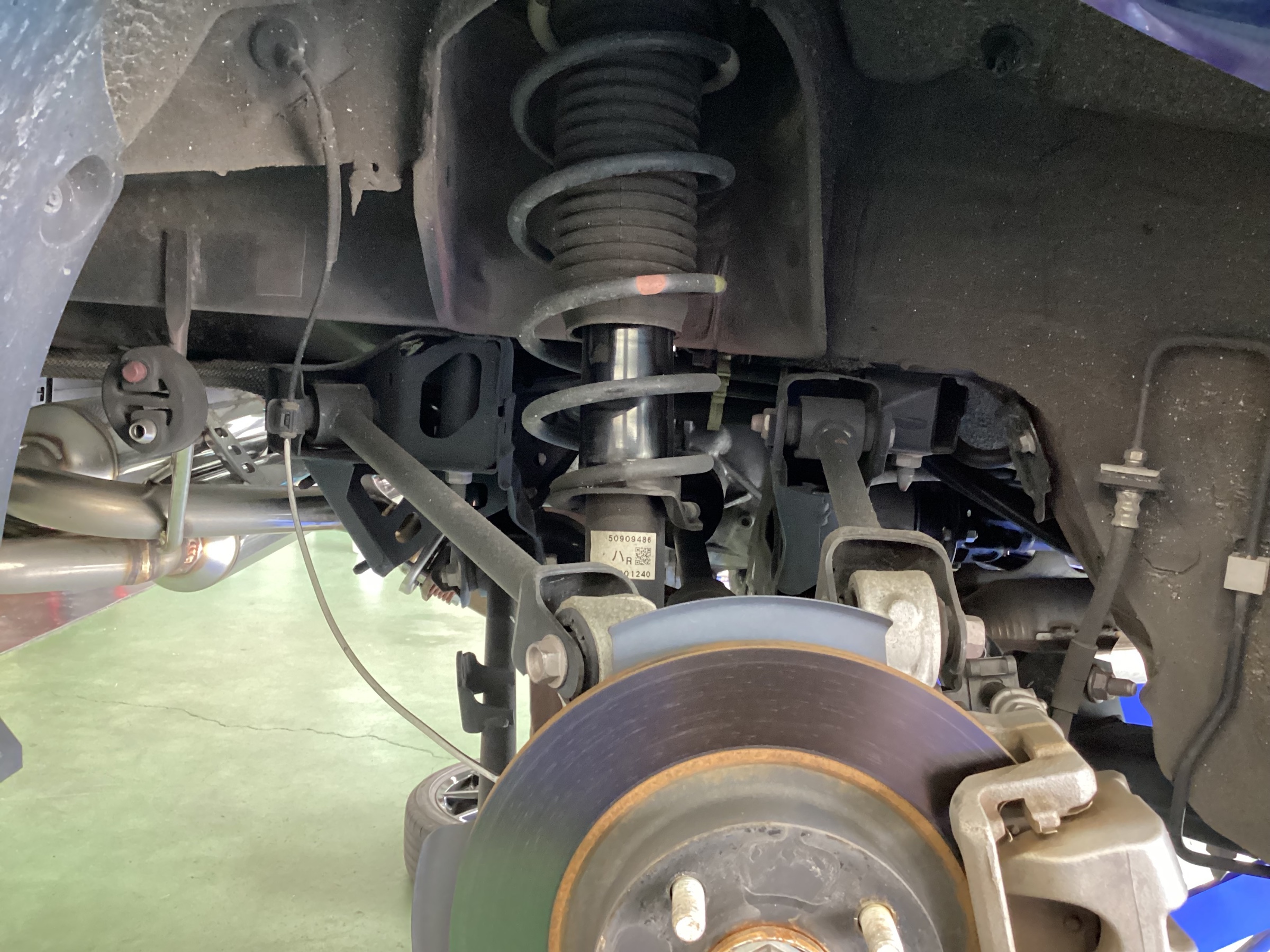 当店では車高調整のみの作業も行っており、車高の範囲内で車高の調整もできます。