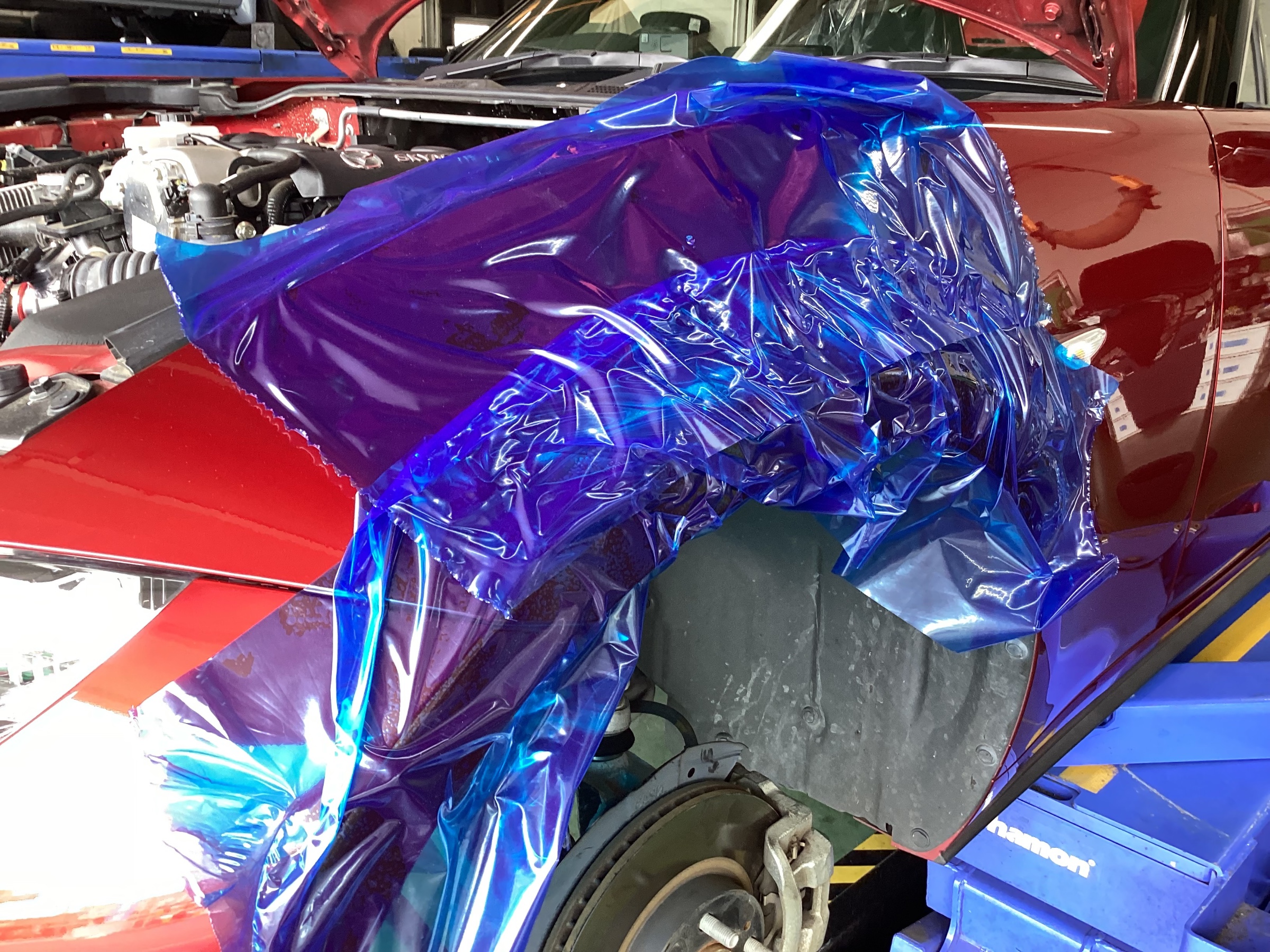 車体もしっかりと養生して作業しております。