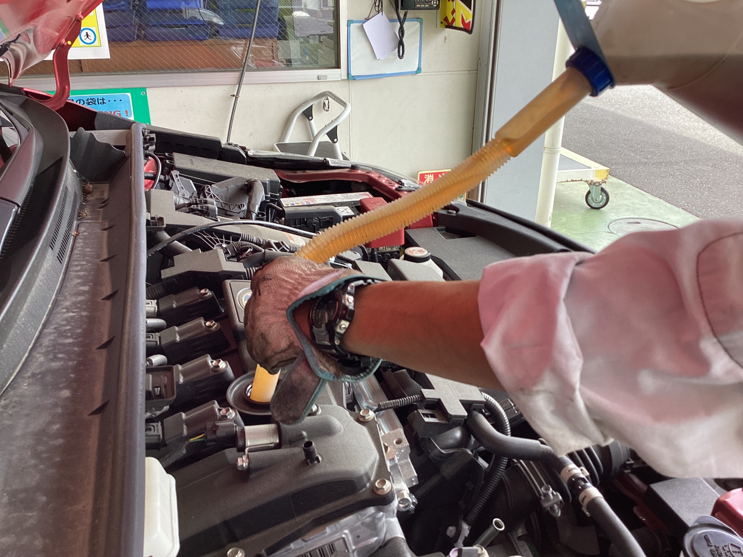 終了です!お客様にもオイル量を確認していただいてます。