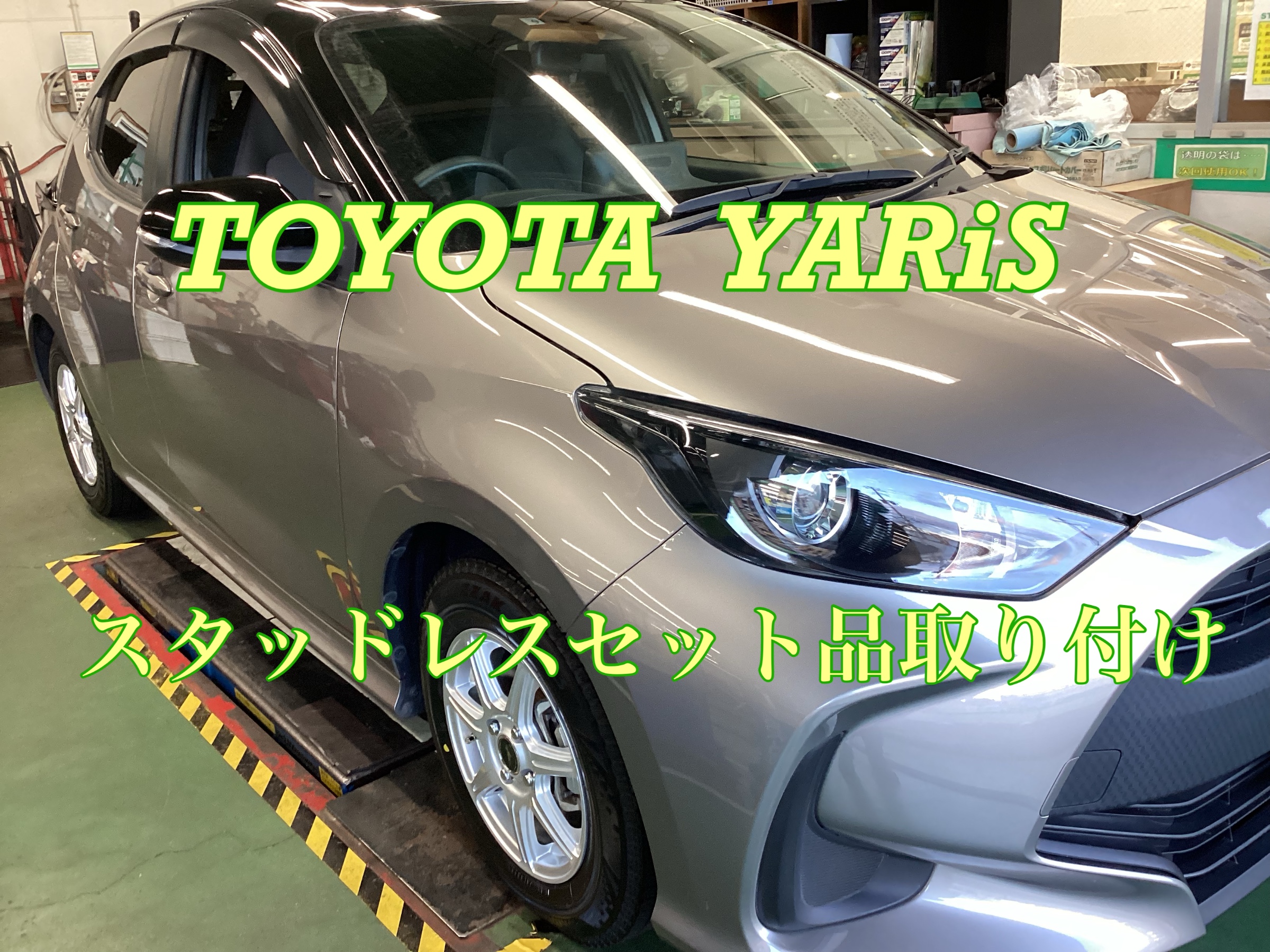 今回はトヨタ・ヤリスのスタッドレスホイールセットのお取り付けをご紹介します。