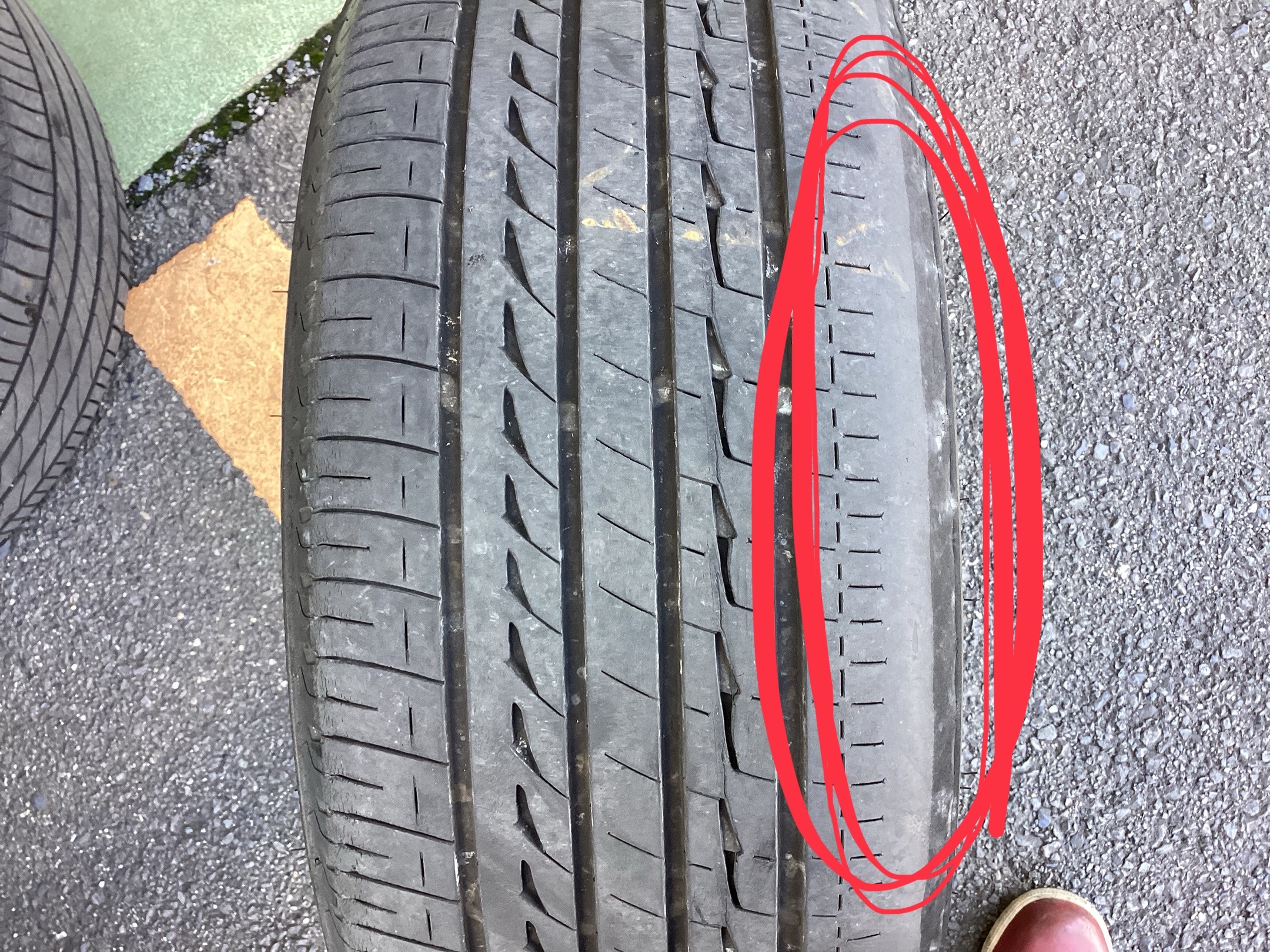 交換前のタイヤは2021年製で約4年前のタイヤになります。