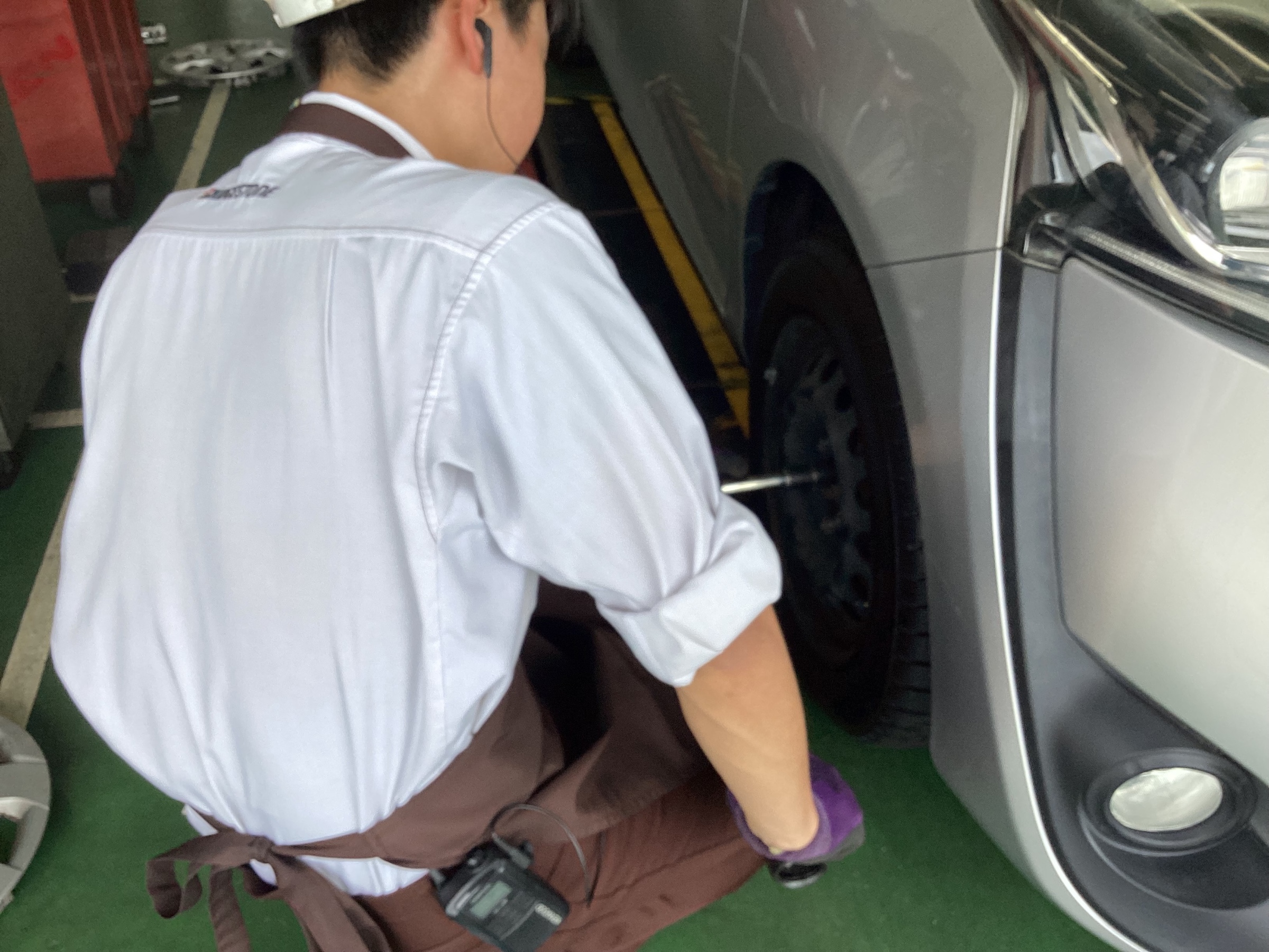 タイヤの100km点検実施中