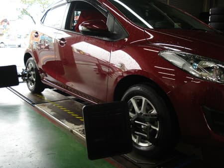 タイヤの取付角度を補正しタイヤの性能を100%発揮させる作業です。