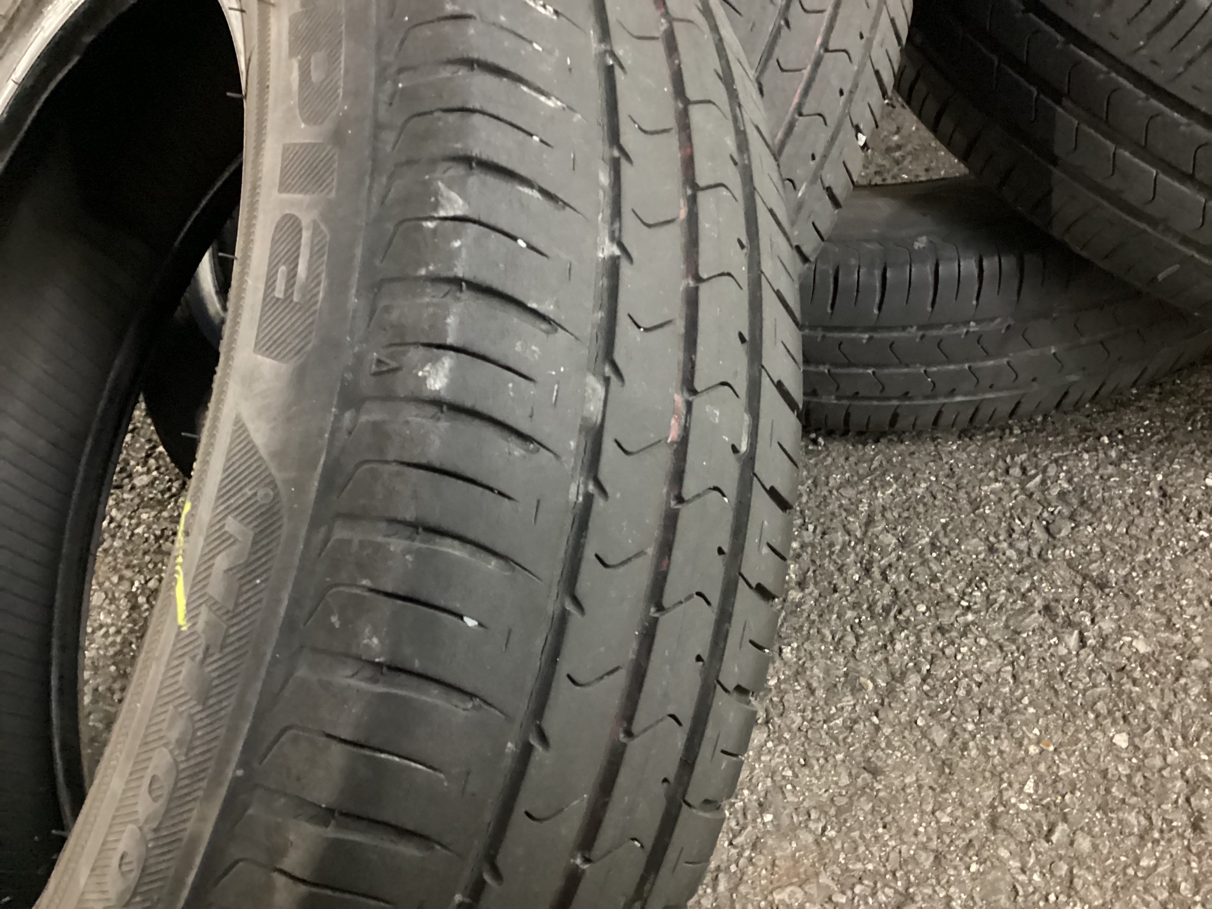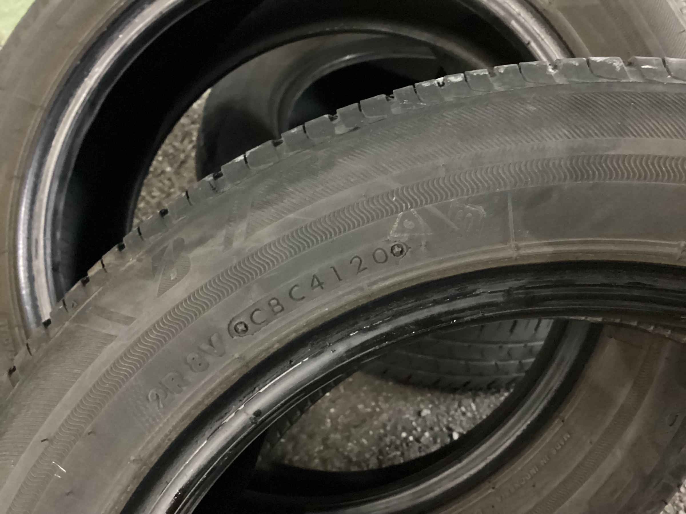 交換前のタイヤは古く、経年劣化によるひび割れ残溝も