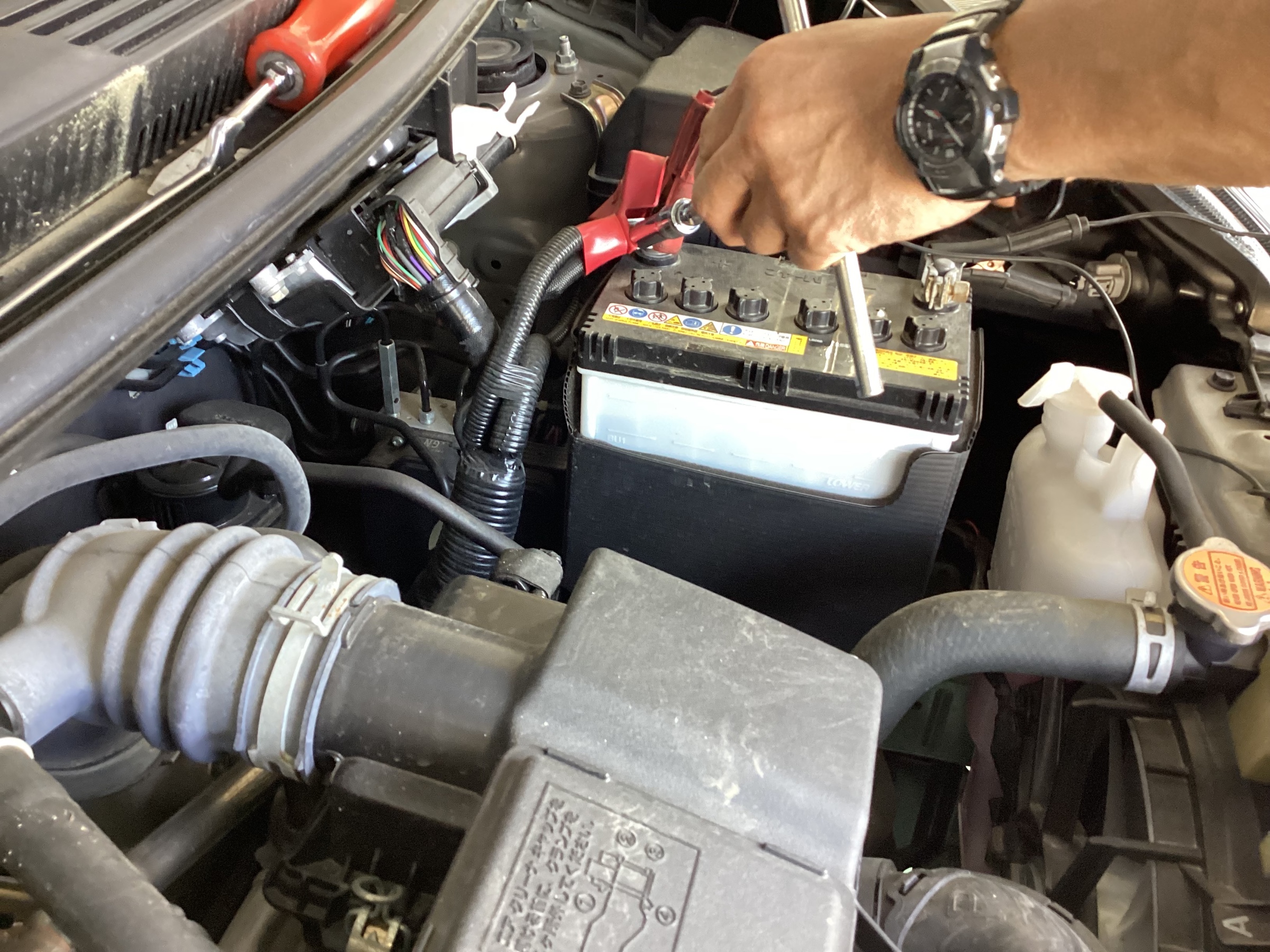バッテリーの端子、ステーの緩みがないか最後にご確認して