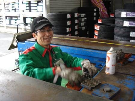 アライメントリフトの清掃に励んでいた梅原スタッフ。