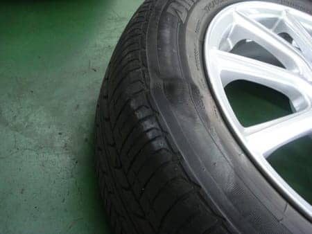 縁石にタイヤをぶつけたりしたらできるもので、修理は不可能です!