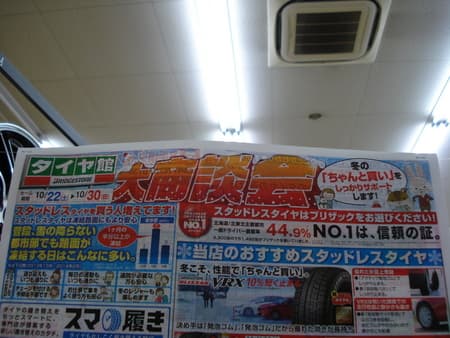 大商談会 ポスト 2016年10月23日 ただ今チラシ期間中でございます!期間が10/30日曜日までとなりますので、是非この機会にスタッドレスタイヤの準備を行い冬の急な雪に備えませんか?当店ではバッテリー、オイルなどの無料点検も絶賛実施中でございます!!!ので、コチラも是非ご利用くださいませ!!! 担当:ヨシナリ