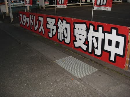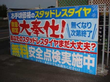 看板付け替え!!! ポスト 2016年10月27日 本日タイヤではなく看板の取り付けを行いました(笑)スタッドレスタイヤも好評販売中で!さらに!安全点検も無料!!!スタッドレスタイヤを購入ついでに、安全点検を無料で行い!バッテリー、オイル、ワイパーなどの悪いところがないかを確認しておきませんか? 担当:ヨシナリ