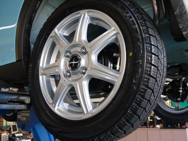 本日ラパンにスタッドレスタイヤ&ホイールセットの取り付けをおこないました!!!