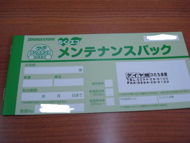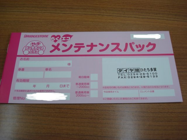 当店をご利用いただいております皆様、タイヤ館のメンテナンスパックというのをご存知ですか?