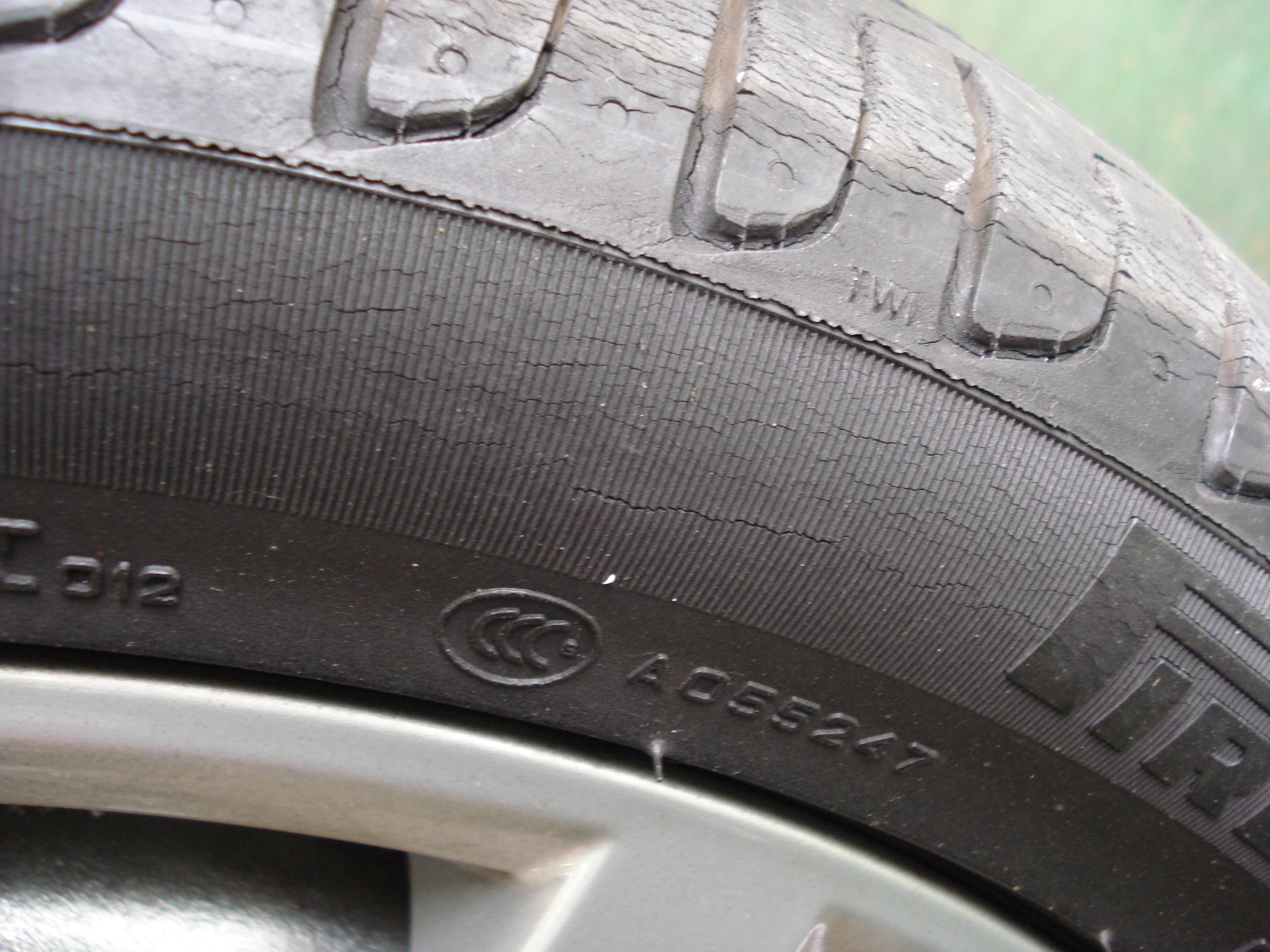 純正タイヤは、ミゾは残っていますがヒビが多く発生していますね。
