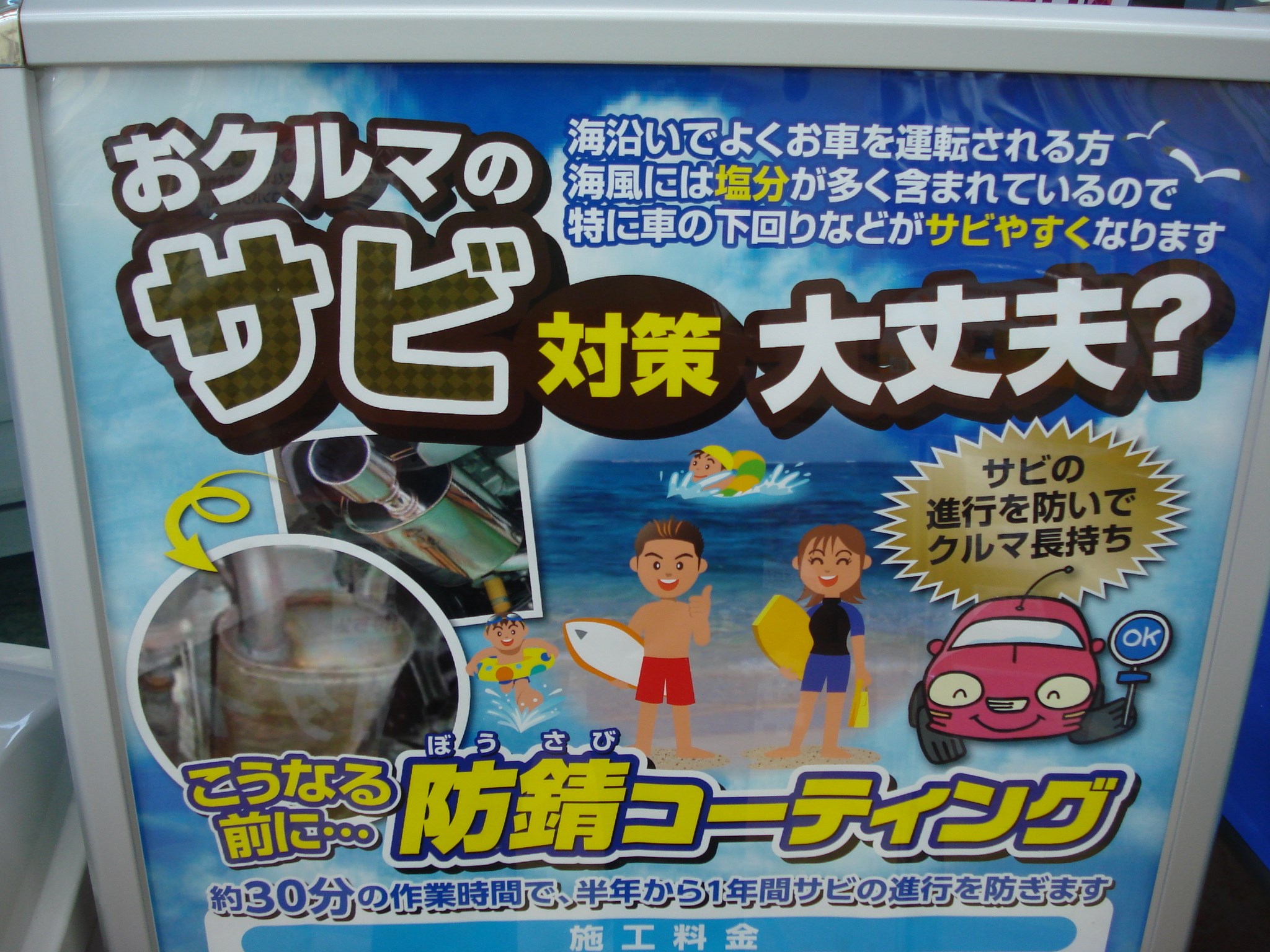★防サビコーティング実施中!! ポスト 2018年7月29日 当店では、防サビコーティングの施工を承っております。 金属部に透明の薬剤を塗布するコーティングです。 当店の近所、河原子や会瀬地区にお住まいの方。 クルマのサビ、お困りじゃないでしょうか?? 是非一度ご相談ください!! 担当:こばやし
