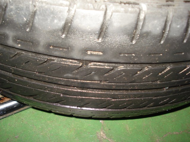 両サイドのミゾが少ないですね。 空気圧不足で走行すると