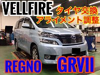 トヨタ・ヴェルファイアHV〜タイヤ交換(REGNO GRVII)+アライメント調整〜
