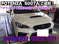 スバル・WRX STI(VAB)〜タイヤ交換(POTENZA S007A)+アライメント調整〜