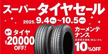 皆さまこんにちは! 日立市東多賀町のタイヤ館ひたち多賀店です。 タイトルにもある通り、スーパータイヤセールが明日10月5日までとなっております。 アプリから簡単にお得なクーポンがダウンロードできます! ブリヂストンブランドのタイヤを4本ご購入時、 店頭表示価格から、最大20,000円引きのタ...