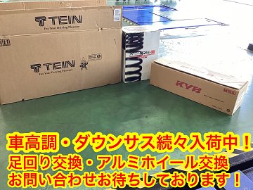 タイヤ館ひたち多賀のHPをご覧いただきありがとうございます! 現在タイヤ館ひたち多賀店ではアルミホイールフェアを開催中ですが それと同時に足回りフェアも開催しております! 一部ではありますが車高調やダウンサスが次々と入荷してきました! 6月29(日)まではフェア開催中ですのでアルミ・車高...