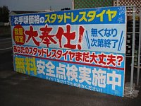 本日タイヤではなく看板の取り付けを行いました(笑) スタッドレスタイヤも好評販売中で!さらに!安全点検も無料!!! スタッドレスタイヤを購入ついでに、安全点検を無料で行い!バッテリー、オイル、ワイパーなどの悪いところがないかを確認しておきませんか?