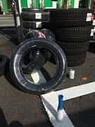 店頭に展示しているタイヤ・・・。 そのままおいてしまうと雨などでゴムが劣化したり汚れてしまったりします。 当店ではそちらの対策でタイヤにラップを巻いて保護しています。 ひとつひとつ手作業で巻いております。 店頭にあるタイヤでも安心して買っていただけますよ!