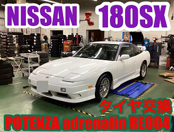 皆様こんにちは(^^) 今回作業させていただきましたお車は「日産・180SX」で タイヤ交換を行いましたのでご紹介します! 今回前のタイヤはかなり溝が減っており、ひび割れ共に劣化が かなり進行していました。 POTENZA アドレナリンRE004 ブリヂストンのスポーツタイヤPOTENZAの中でも、 幅広いサイ...