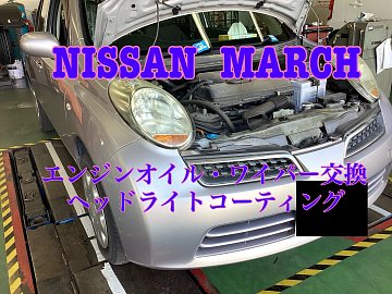 日産・マーチ オイル・ワイパー交換 ヘッドライトコーティング