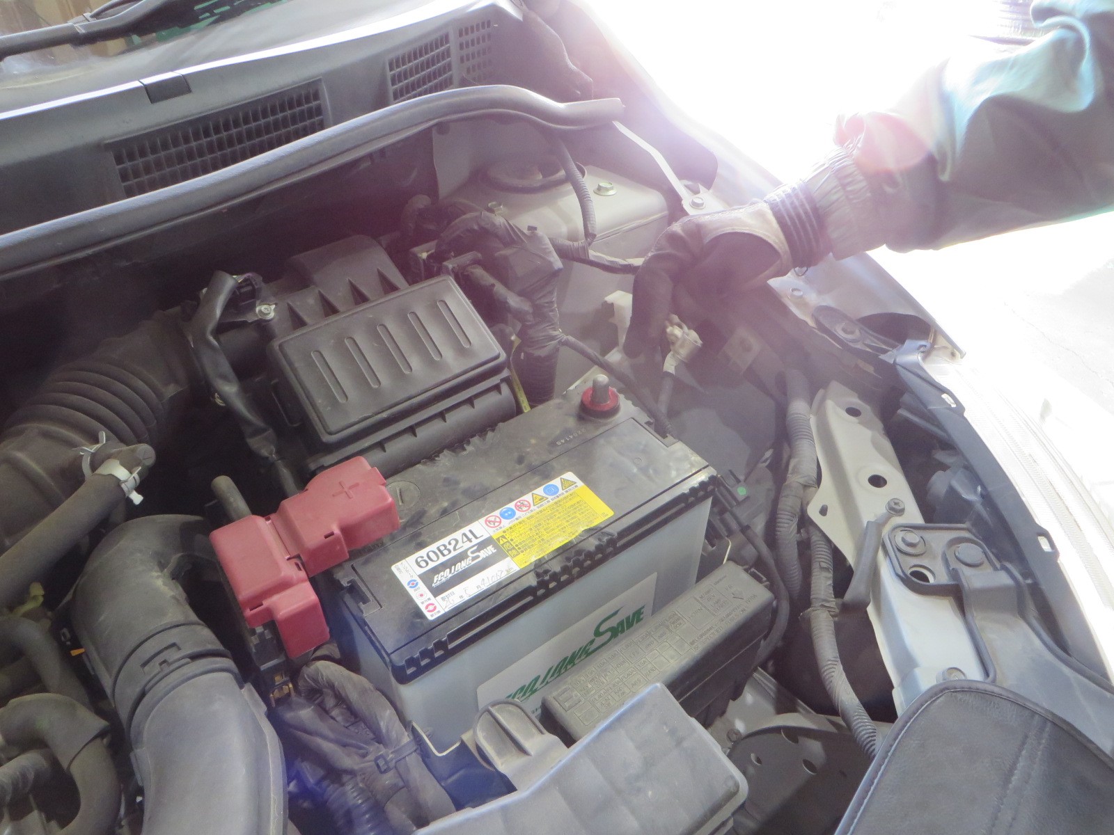 ↓ 車内のシガーソケットからバックアップ電源を取り、接続し交換準備完了です。