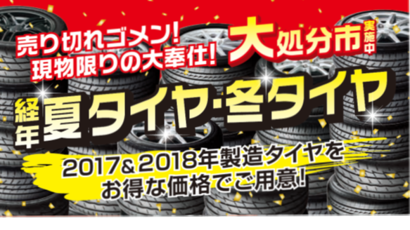 夏用タイヤ「長期在庫品、売り尽くし!」 ポスト 2021年2月25日 只今、当店では、夏用タイヤ【売り尽くしSALE!!】開催致します! 旧モデル・長期在庫品を、お買い得価格にて販売致します! 現品限りになりますので、そろそろ履き替えをお考えのお客様は 早めの準備として、ご検討下さい! 店頭に並んでいない商品につきましては、スタッフまでお声掛け下さい。 在庫限りとなりますので、無くなり次第終了となります。