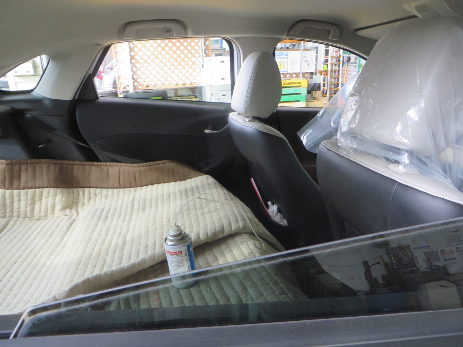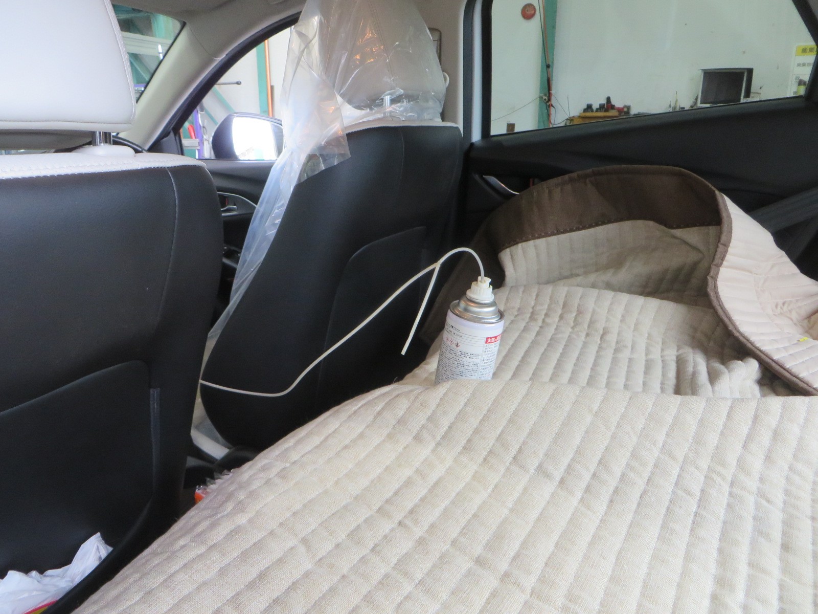 しっかりと溶剤を車内に振りまいていきます。