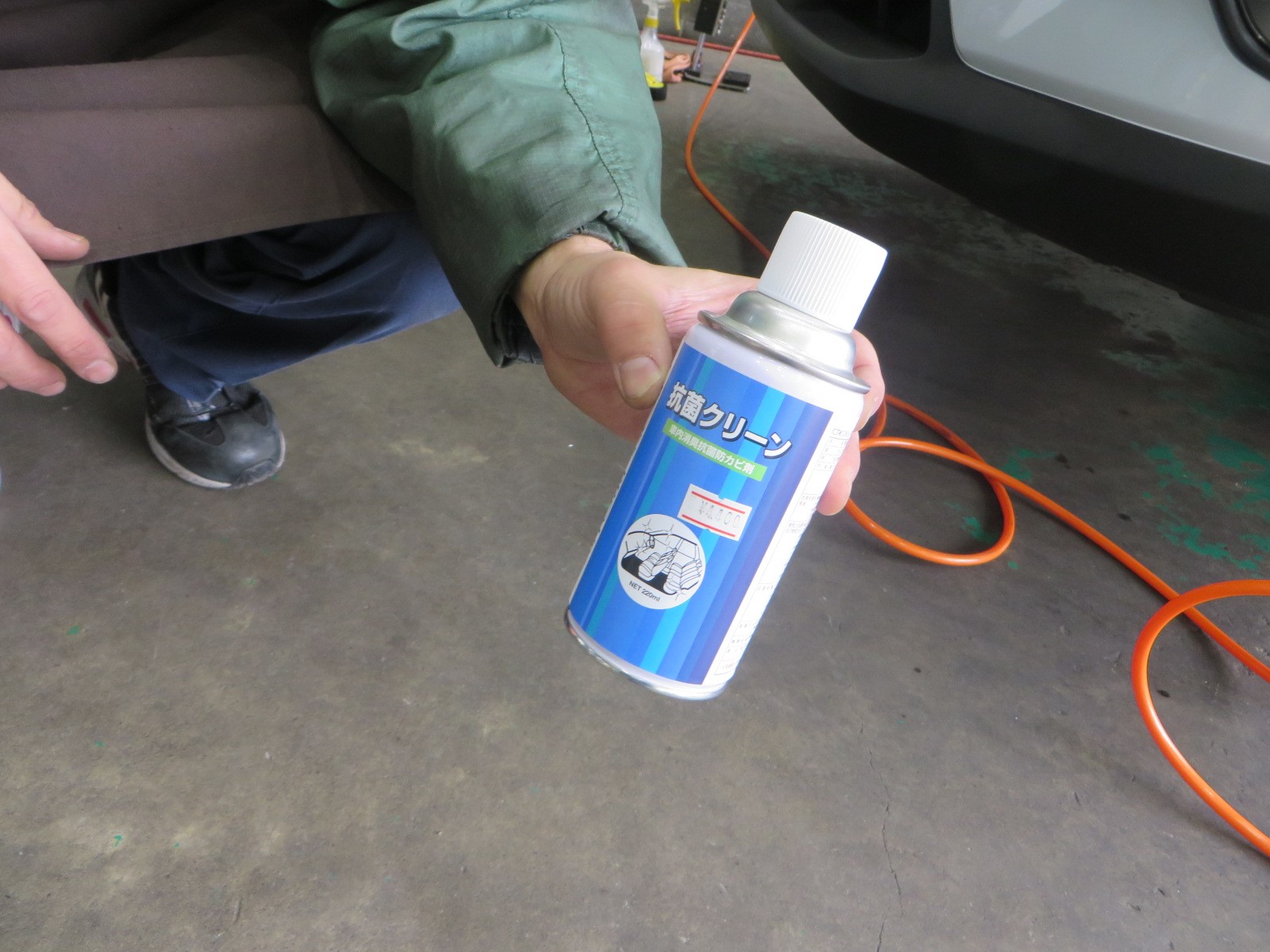 施工方法はエアコンフィルター・直接車内に同時噴霧してい行きます。