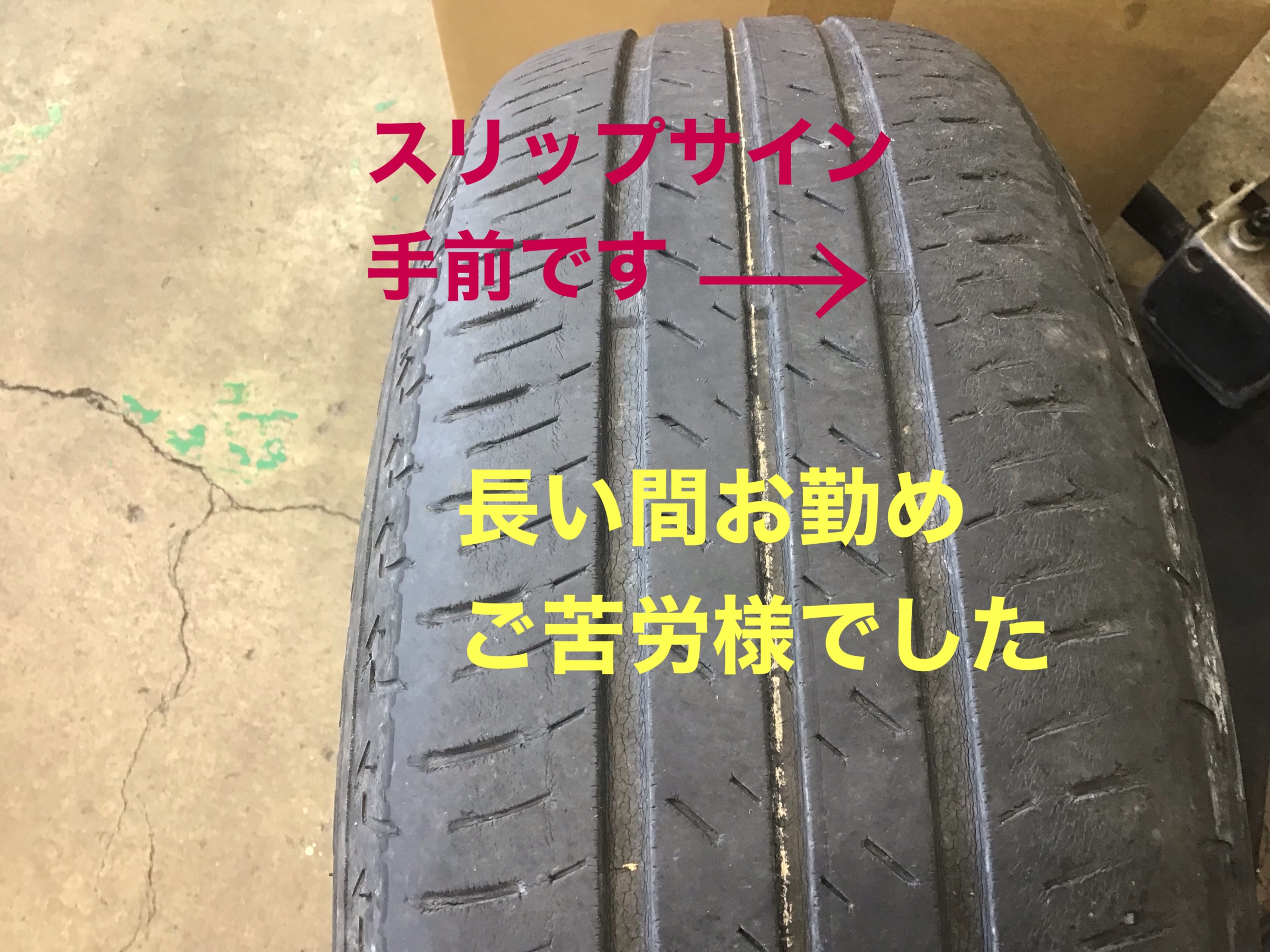 今まで頑張ってくれたタイヤ・・・