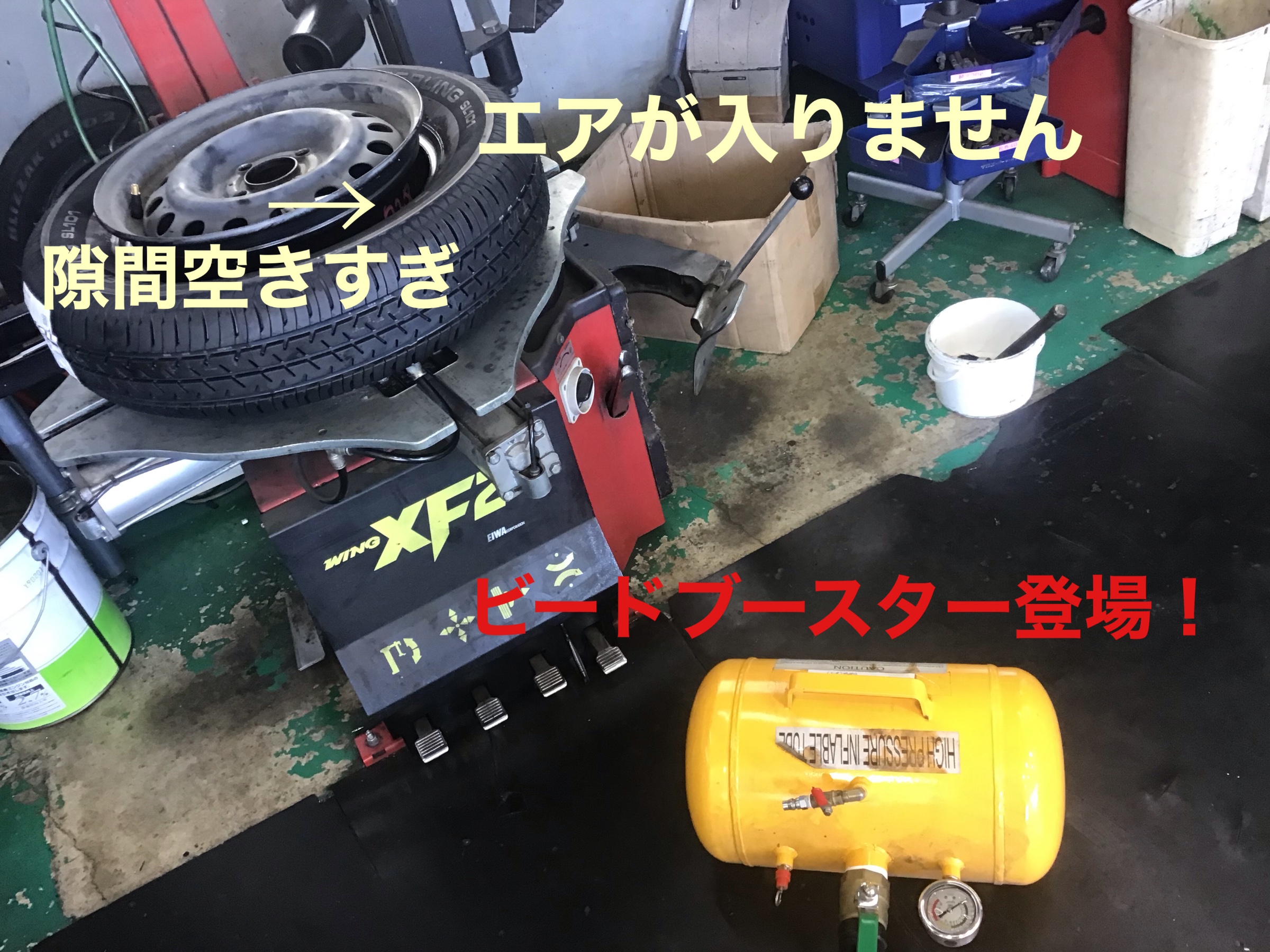 強制的にエアを注入する特殊な機材を使ってエアを注入です。