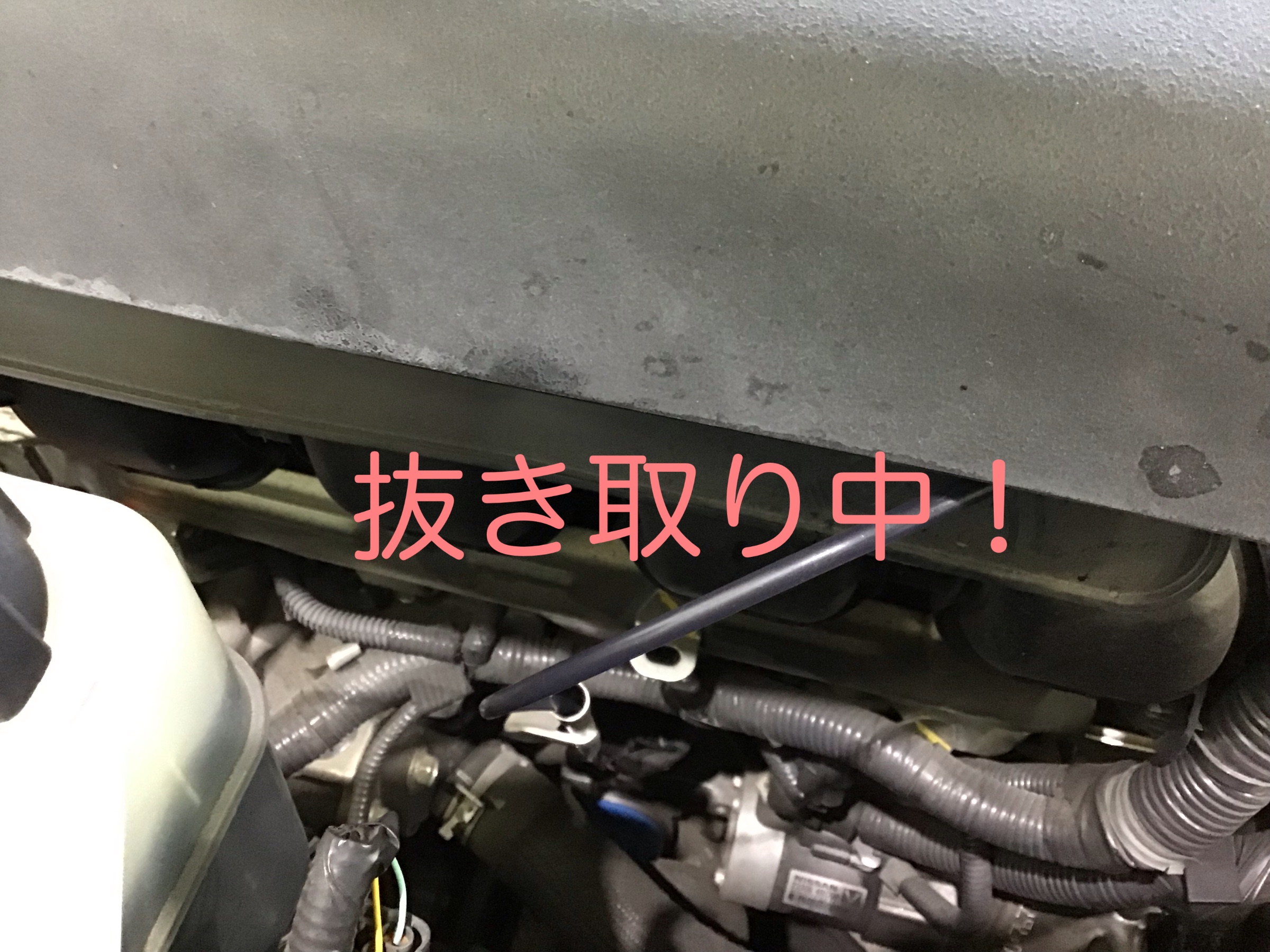 レベルゲージからオイルを抜くべく事前に油量をチェックしておきます。