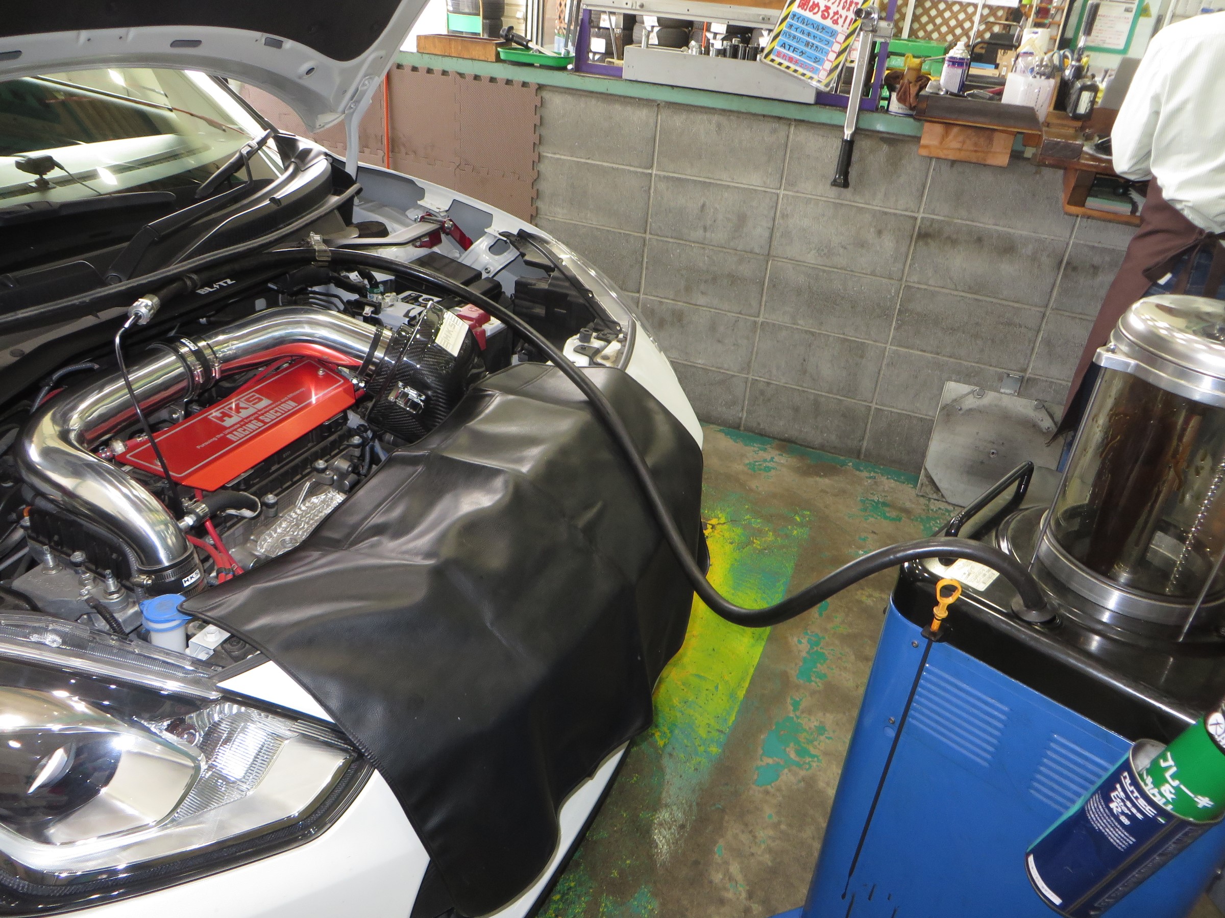 オイルチェンジャー(機械)をセットして上抜き開始です!