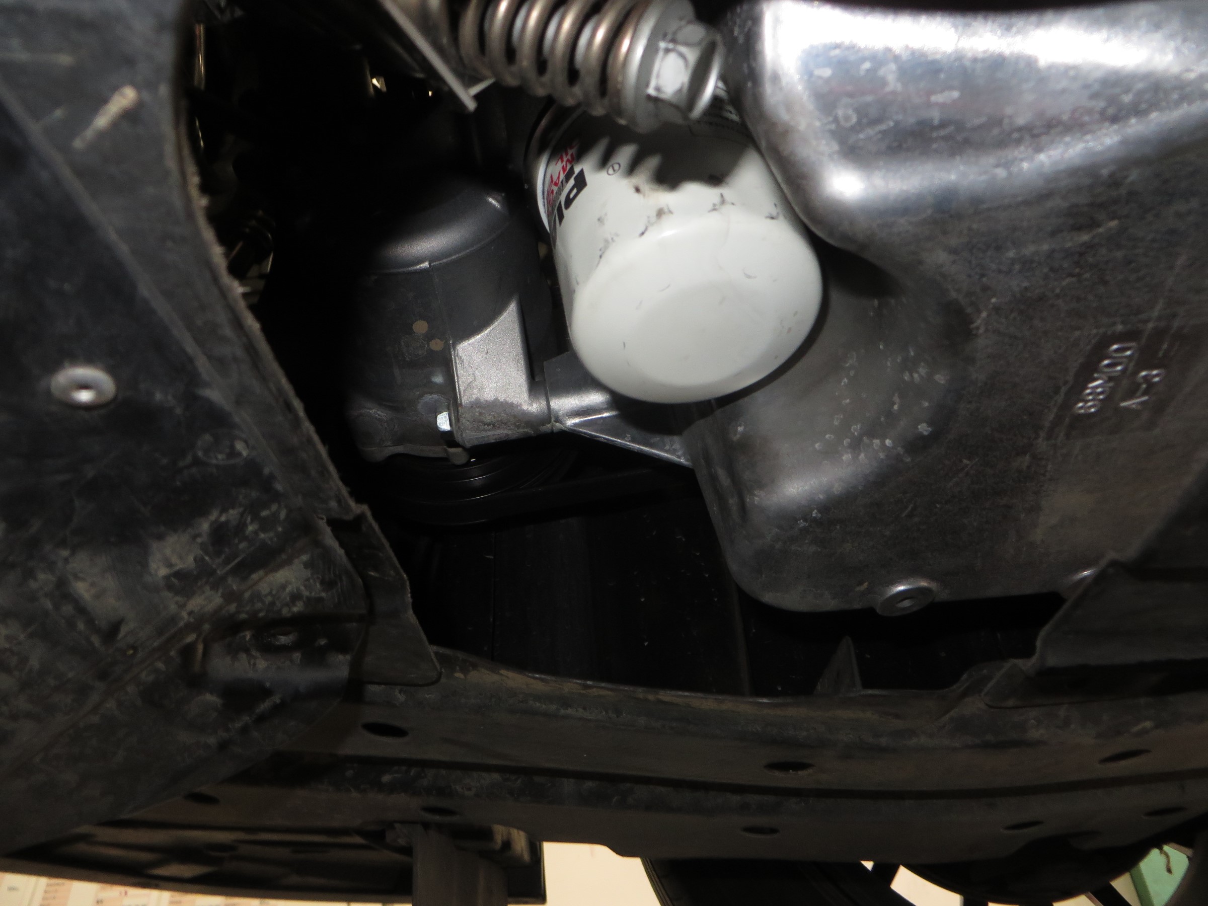 この車のエレメントは車両下側にありますので、下側から外します。