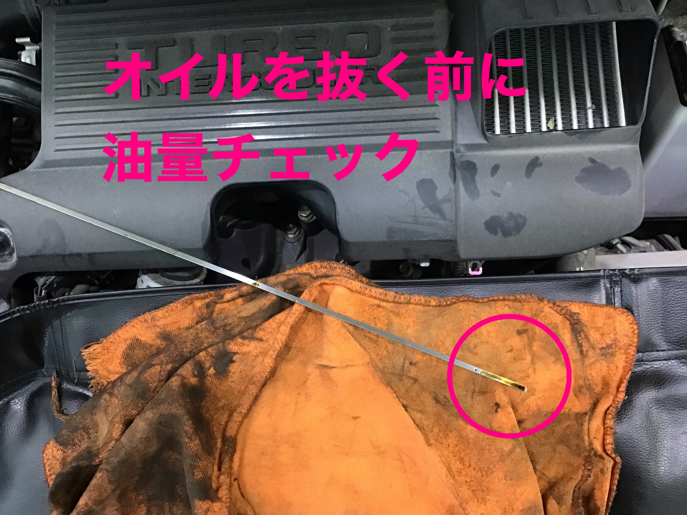 上からオイルを抜いていくのでしっかりとオイルの量をチェックします。