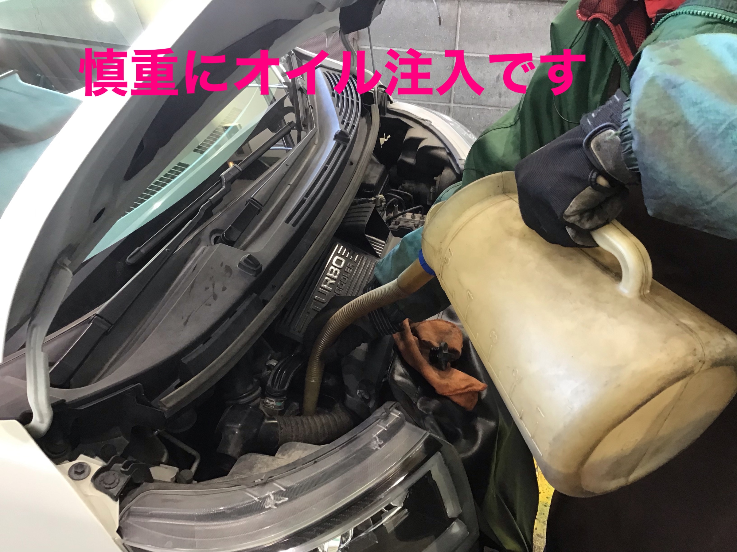 しっかり抜き取ったらこぼさないようにオイルを入れていきます。