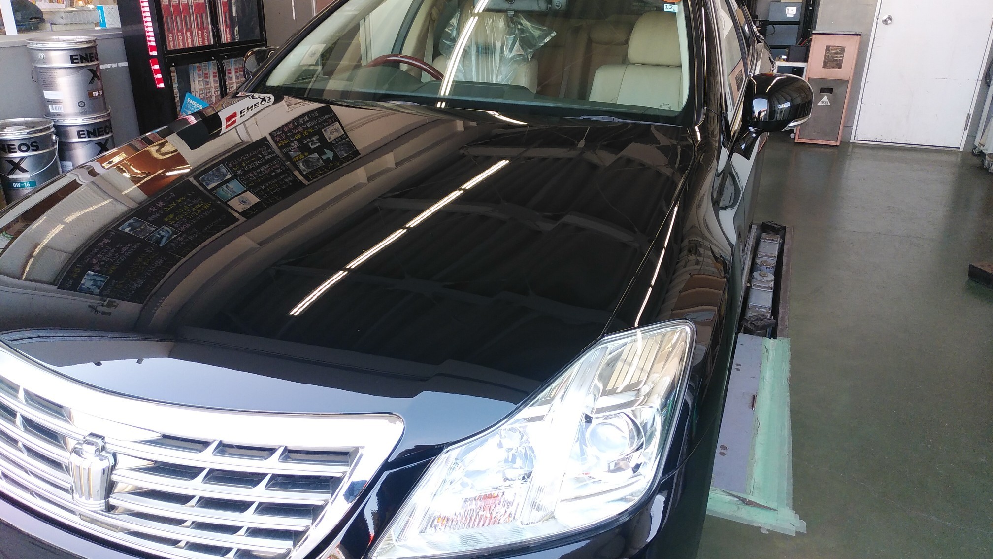 施工する車両は「トヨタクラウン」ボディの色はつやが際立つブラックです。