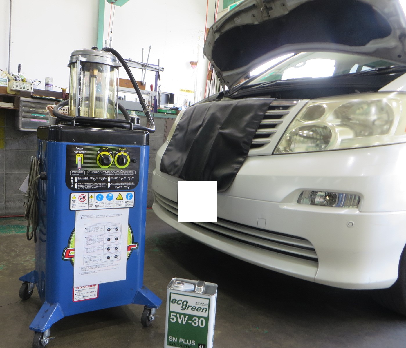 早速現状のオイル量を確認していざ、専用上抜きチェンジャーで作業開始です。
