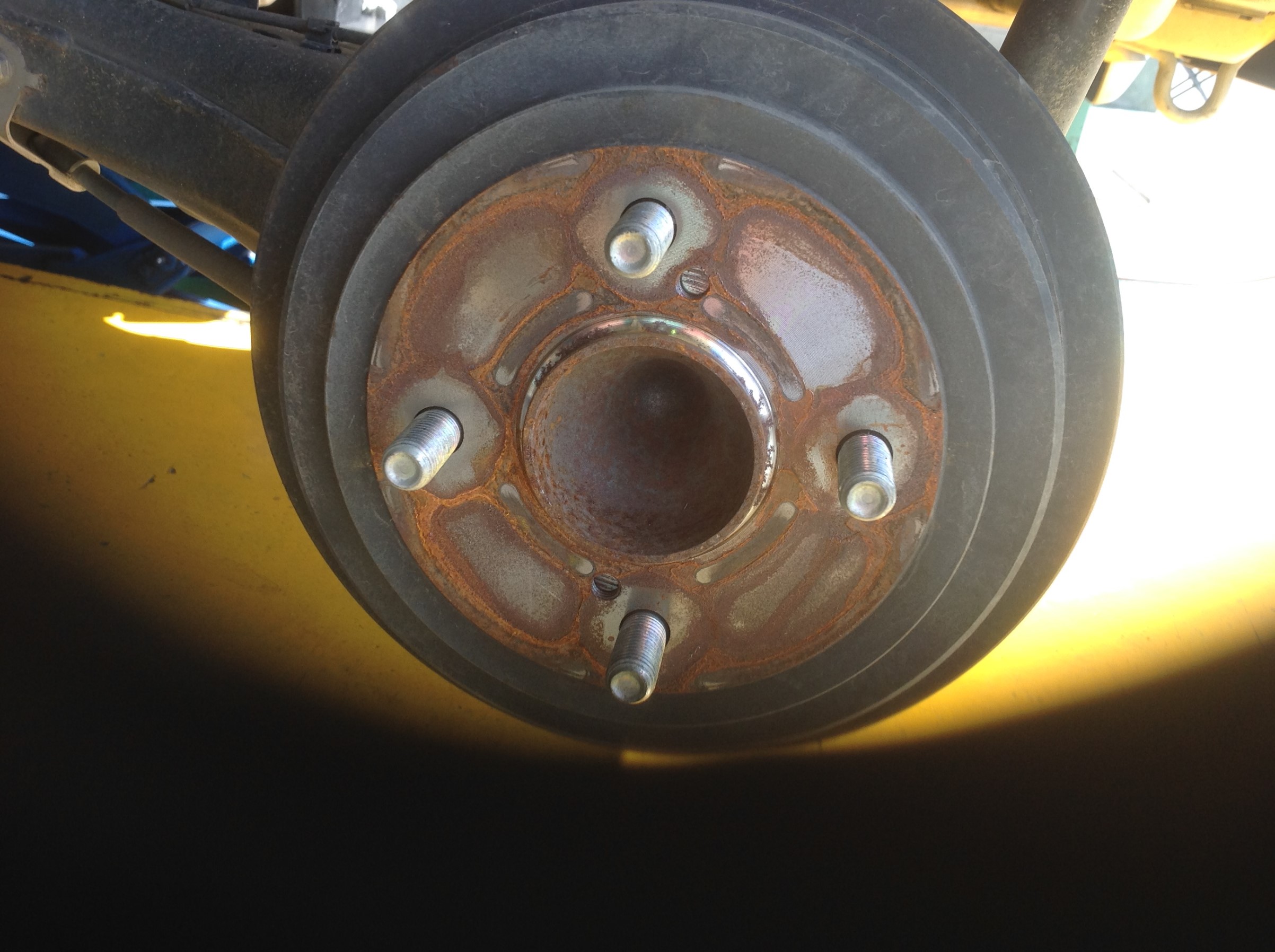 車の脱着の時に、タイヤをはずすとブレーキが見えてきますが、鉄で出来ていますからもちろんさびてしまいます。