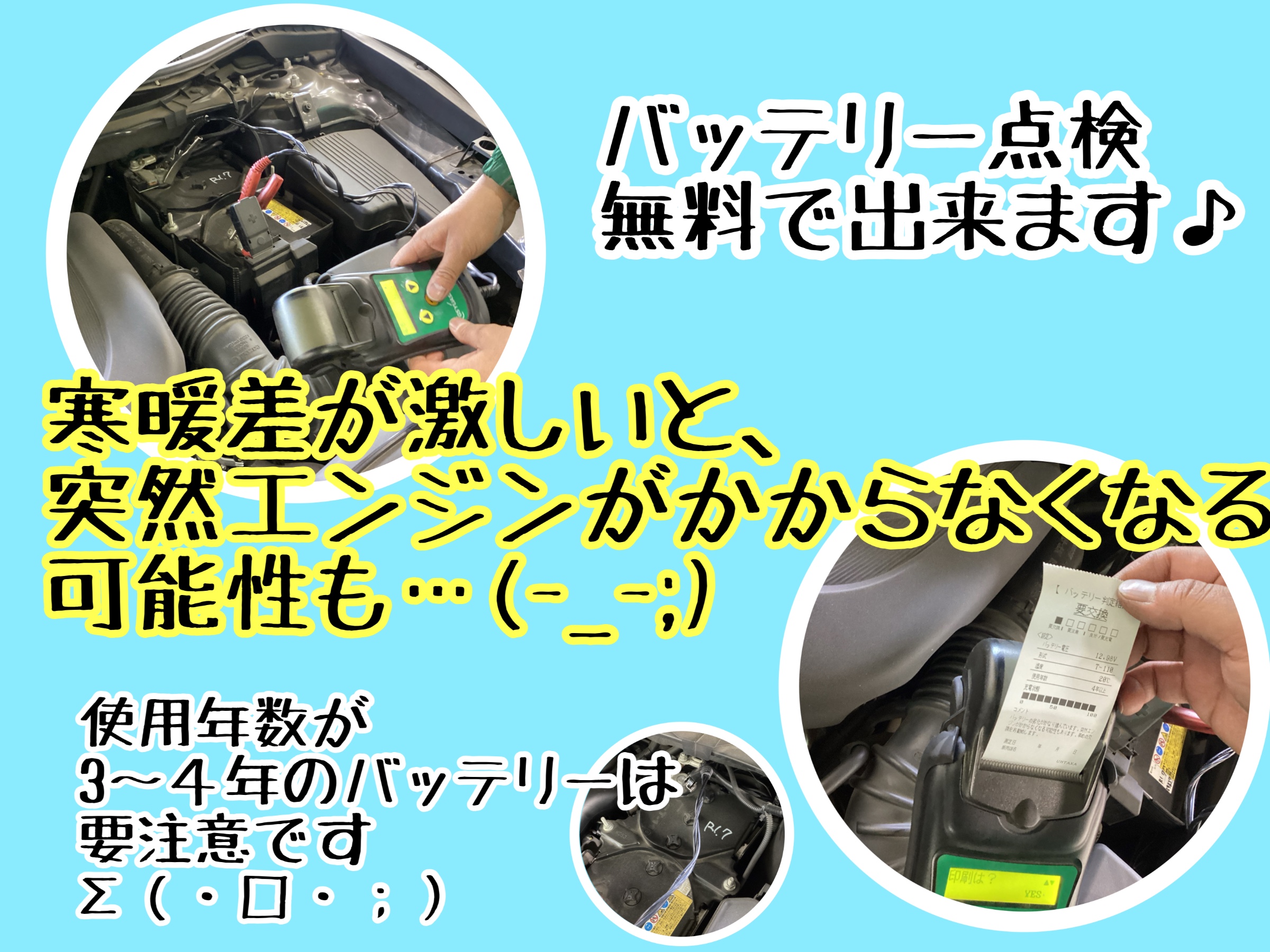 3〜4年交換してない方は突然エンジンがかからなく可能性がありますΣ(・□・;)