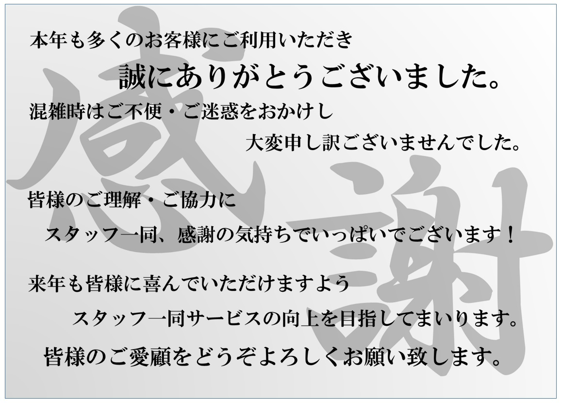 タイヤ館本庄店をご利用いただきました皆様へ ポスト 2023年12月30日 いよいよ明日で2023年も終わりを迎えますが 皆様の今年1年はいかがでしたでしょうか 私達、タイヤ館本庄店スタッフも無事に年を越せる事ができました 皆様のご来店のおかげでございます。 残り1日ではありますが、皆様よいお年をお迎えください。 タイヤ館本庄 スタッフ一同