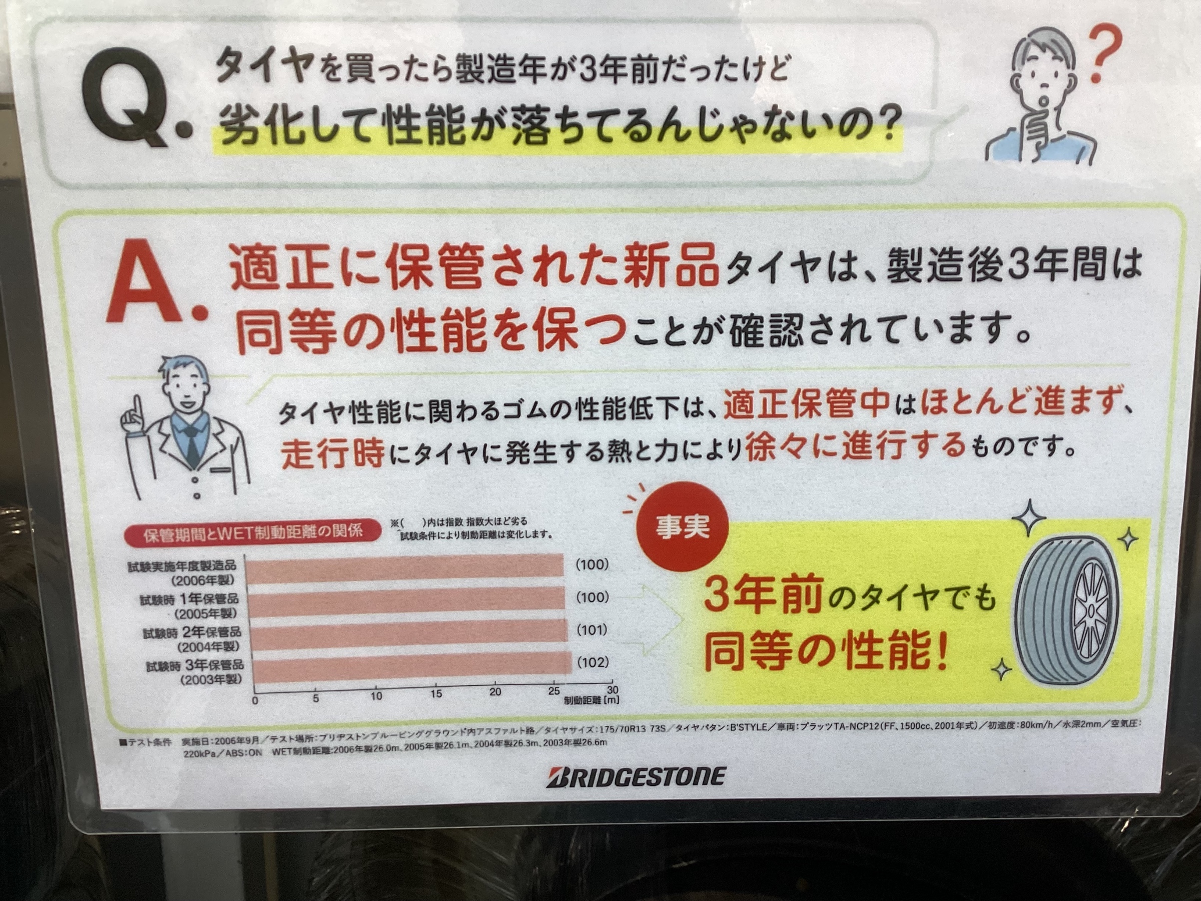 OUTLET品とはいっても、適正な環境で保存したタイヤであれば、今年製造したものと同等の性能を保つ事が出来ます。