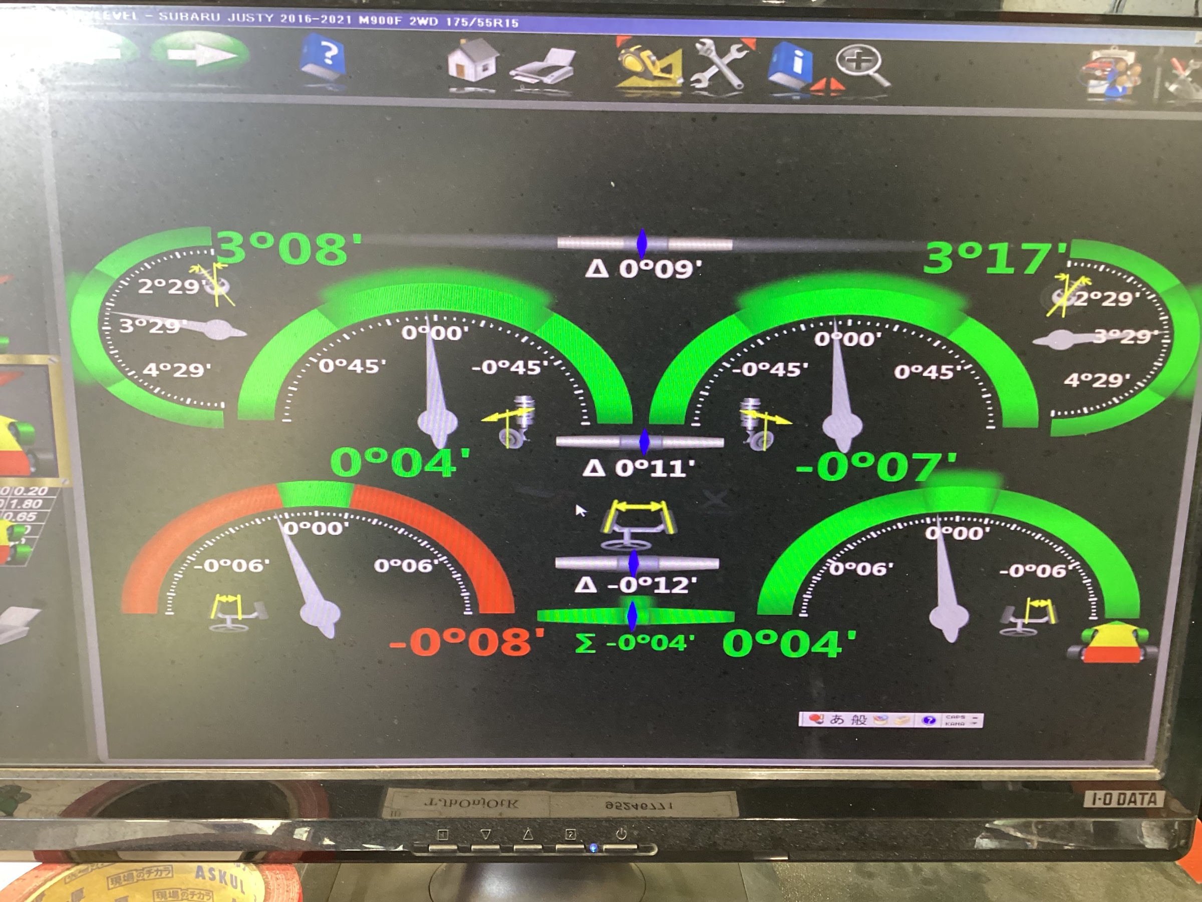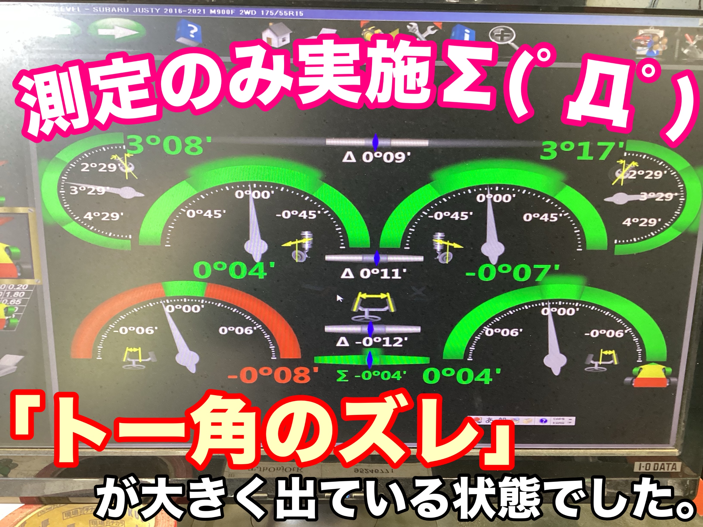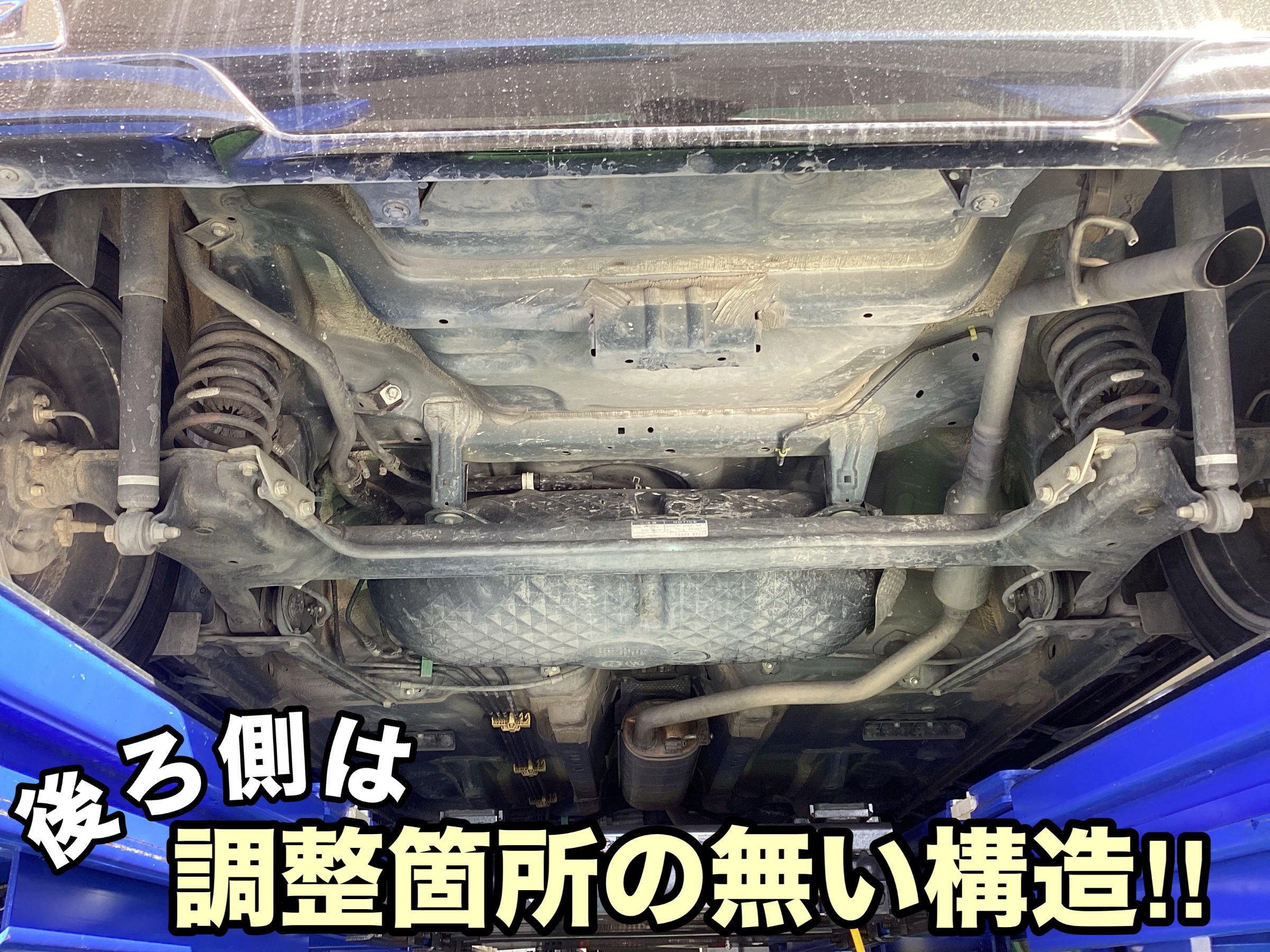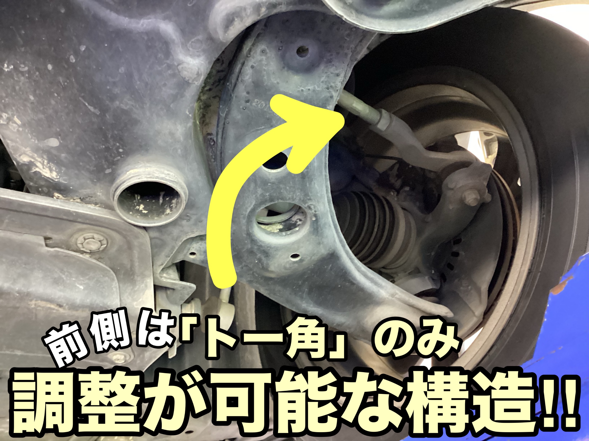 お車ごとに調整出来る部分が異なりますが、今回のお車は【前輪部「トー角」のみ】