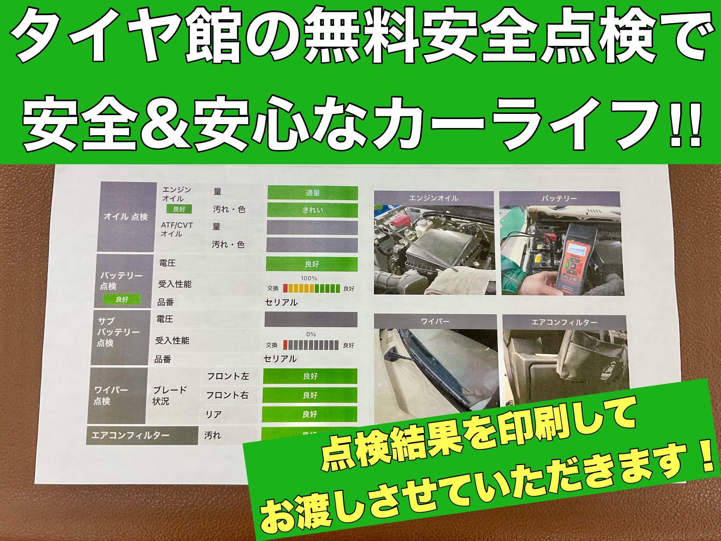 当店ではご入庫されたお客様に無料でタイヤ点検と安全点検をさせていただいております。